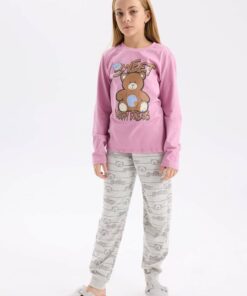 پایین لباس راحتی کمر کشی بالا آستین بلند طرحدار چاپی خرس کوچولو دخترانه برند Defacto کد 1736694165