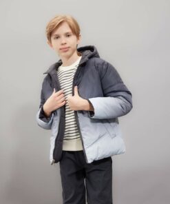 پیراهن قالب گشاد آستین بلند یقه سه دکمه پسرانه خاکستری آنتراسیت برند Defacto کد 1737788615