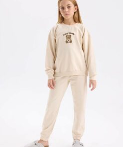پایین لباس راحتی کمر کشی بالا آستین بلند یقه گرد چاپی دخترانه برند Defacto کد 1734881007