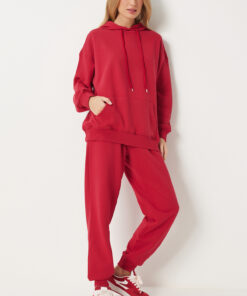 ست ورزشی زنانه با هودی، شلوار جگر و اندازه بزرگ، با پارچه آنتراسیت – مدل PYS0027 کد 1741198581