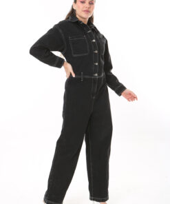 پیراهن جین زنانه بزرگ سایز سیاه با دوخت متضاد و دکمههای فلزی 65N37723 کد 1742161327