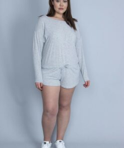 شلوارک سرهمی خاکستری با جزئیات بند کمر برای زنان سایز بزرگ 65n25813 کد 1742161265