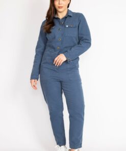 زنانه بزرگ سایز جین سرمهای با دکمه فلزی و کمربند کشی در پشت، مدل 65N37722 کد 1742155871