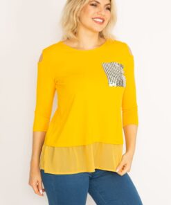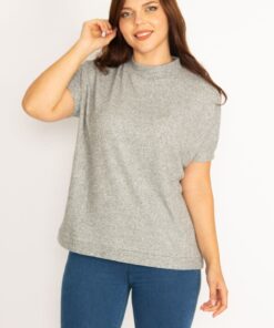 بلوز زنانه بزرگ سایز سفید با یقه V و جزئیات سنگ‌های تزئینی 65n32057 کد 1742181729