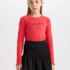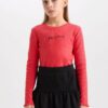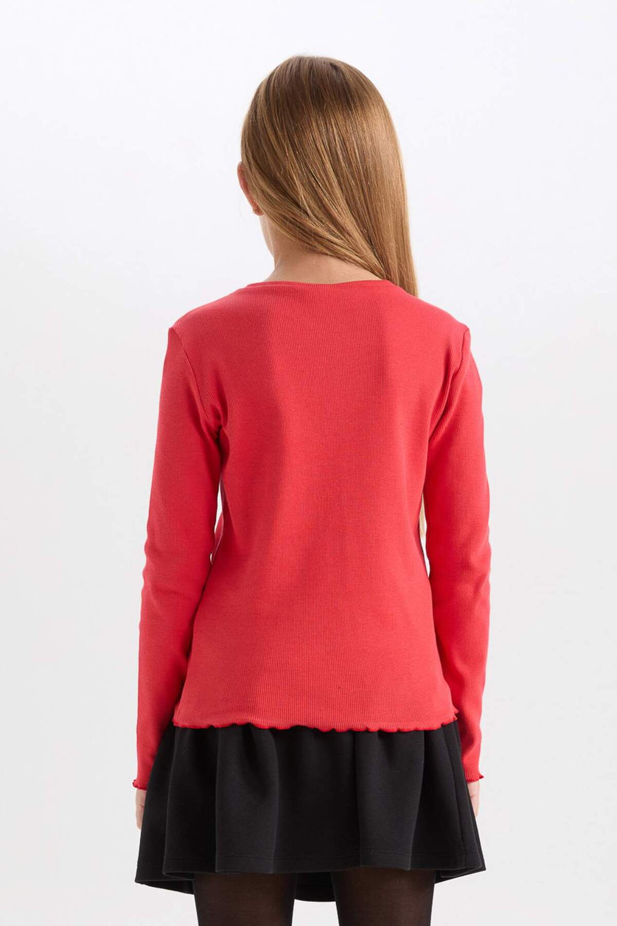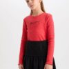 این تیشرت با آستین بلند طراحی شده و برای فصول سرد سال مناسب است. رنگ قرمز این لباس انتخابی جذاب برای دختران جوان میباشد.
