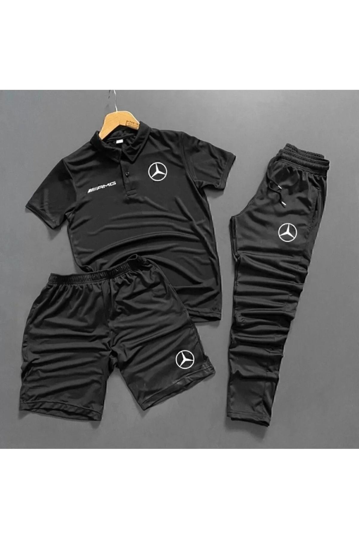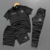 ست لباس راحتی شلوارک 3تایی یقه سه دکمه غواصی چاپی مشکی برند ByFourMan کد 1720743080