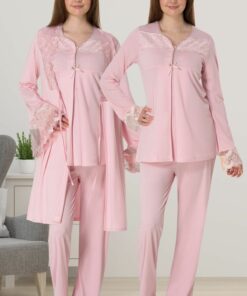 جزئیات پاپیونی که در طراحی این ست به کار رفته است، به آن زیبایی و جذابیت بیشتری میبخشد و میتواند به راحتی با دیگر اکسسوریها ست شود. این جزئیات، جلوهای شیک و مدرن به ست خواب میبخشد و مادران باردار میتوانند با افتخار این لباس را هنگام استراحت یا در مهمانیهای کوچک به تن کنند. این ست خواب به عنوان یک هدیه منحصر به فرد نیز میتواند انتخابی عالی باشد.