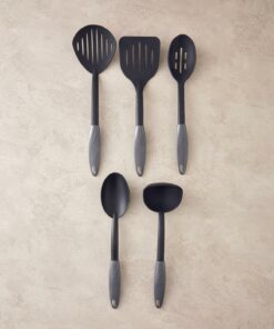 ست کفگیر چوبی قاشق چوبی راش روغنی 11 عددی سرو ملاقه انبر چنگالی چوبی – با پایه چوبی