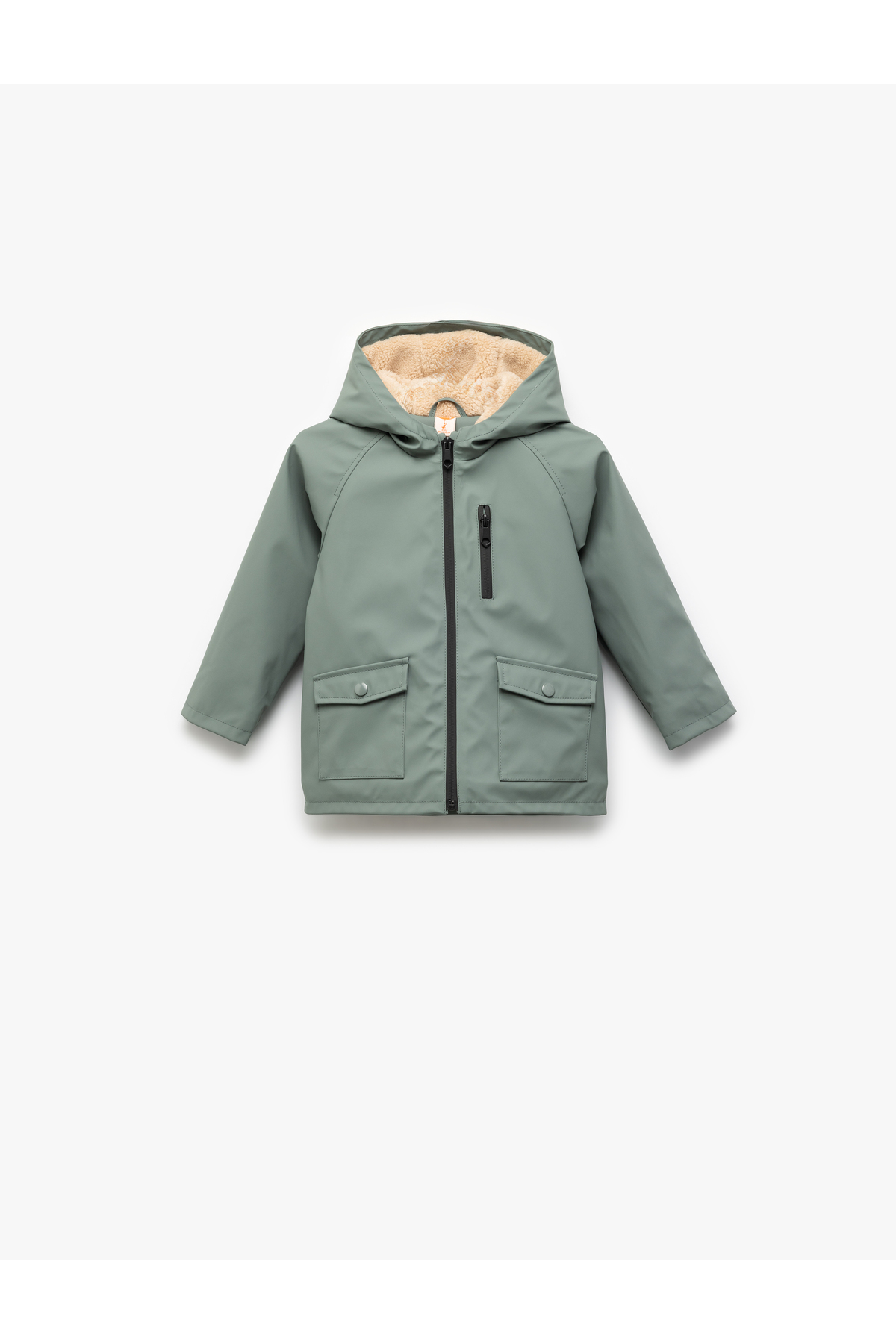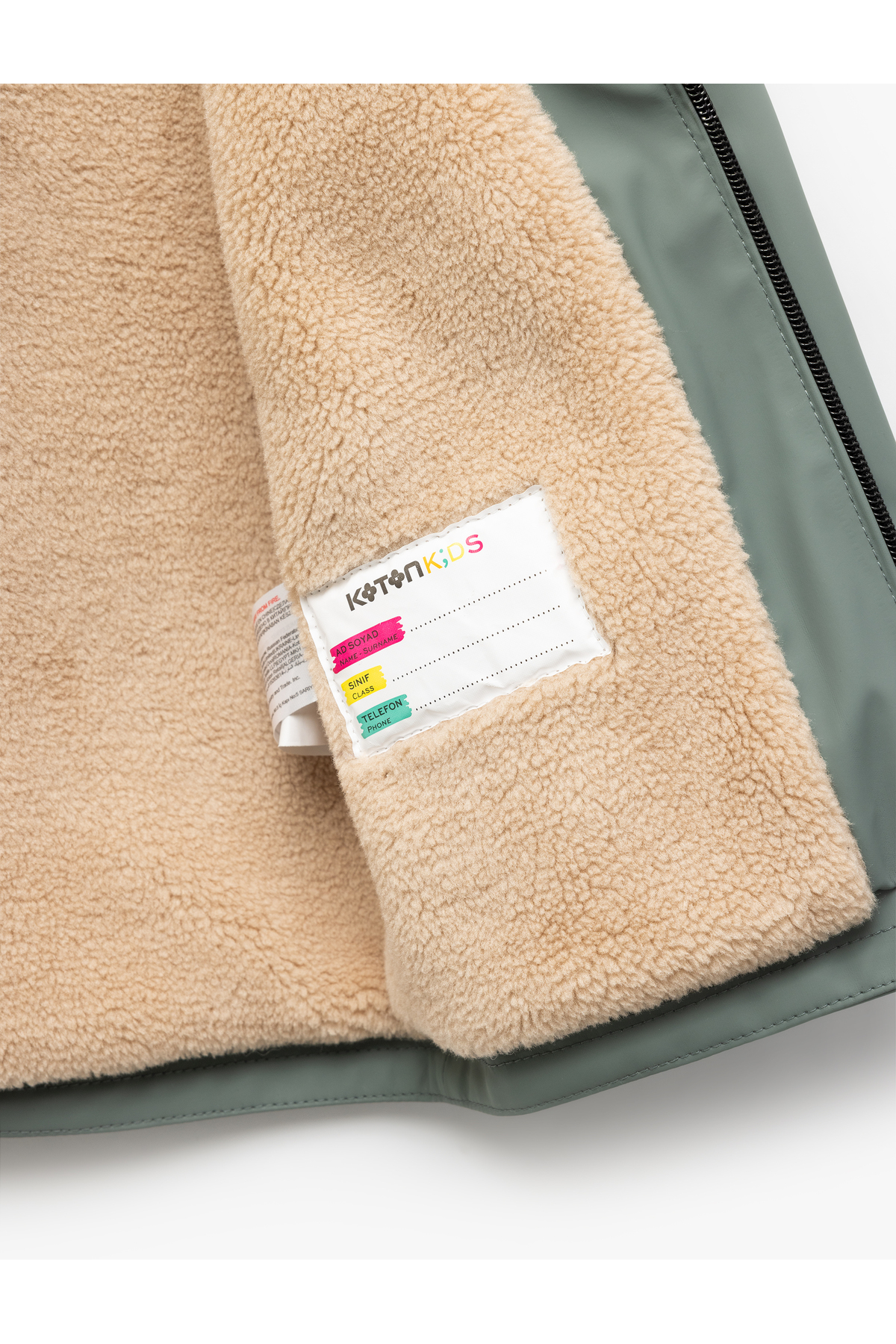 کاپشن فری با آستردار پشمی و کلاهدار با زیپ بلند برند Koton