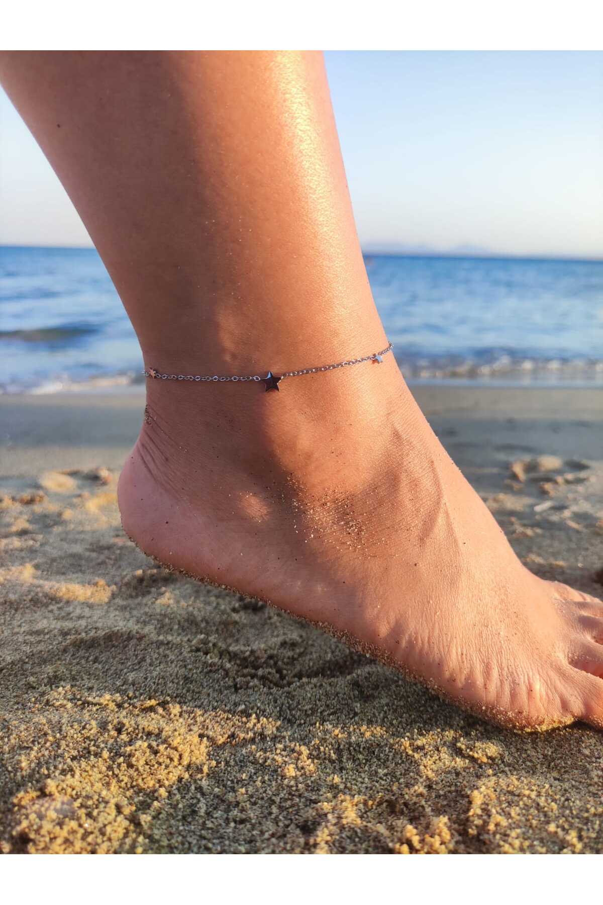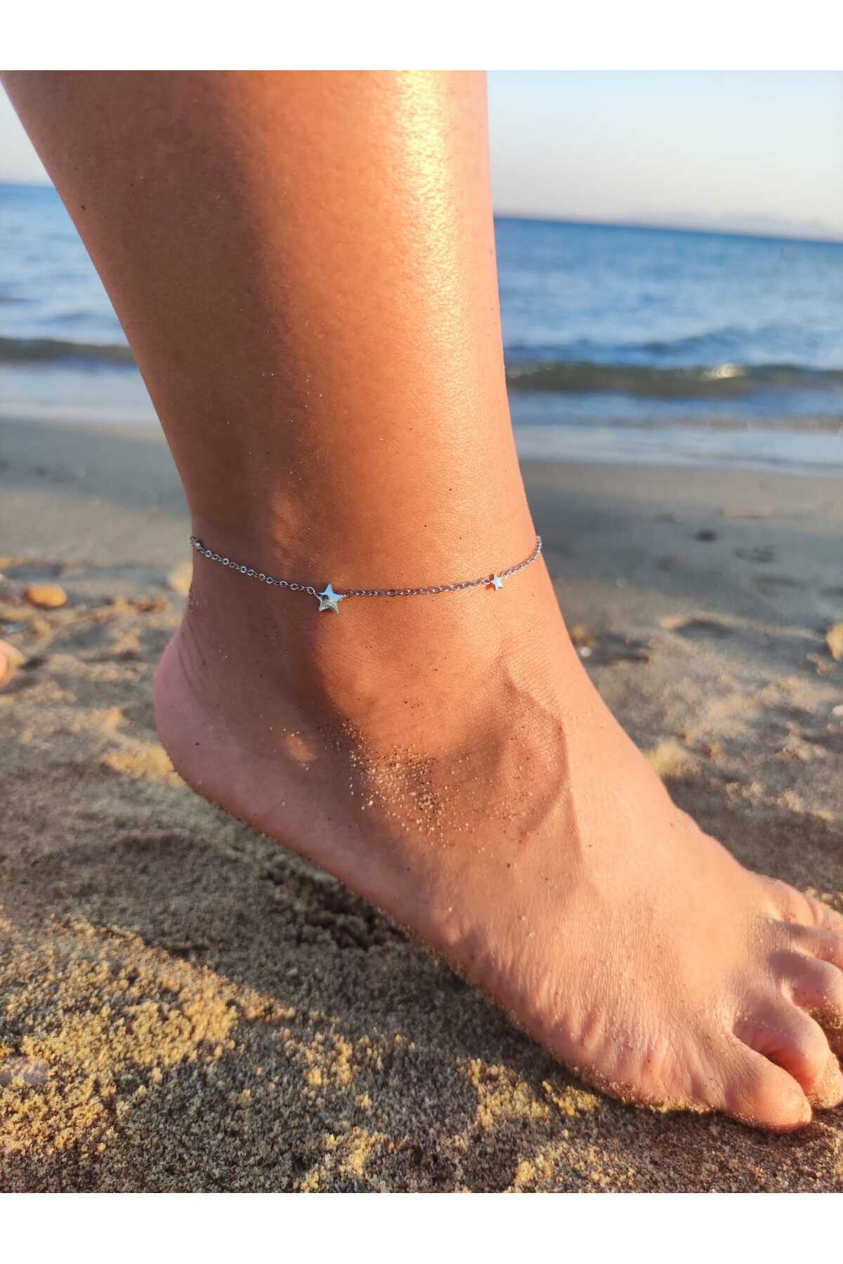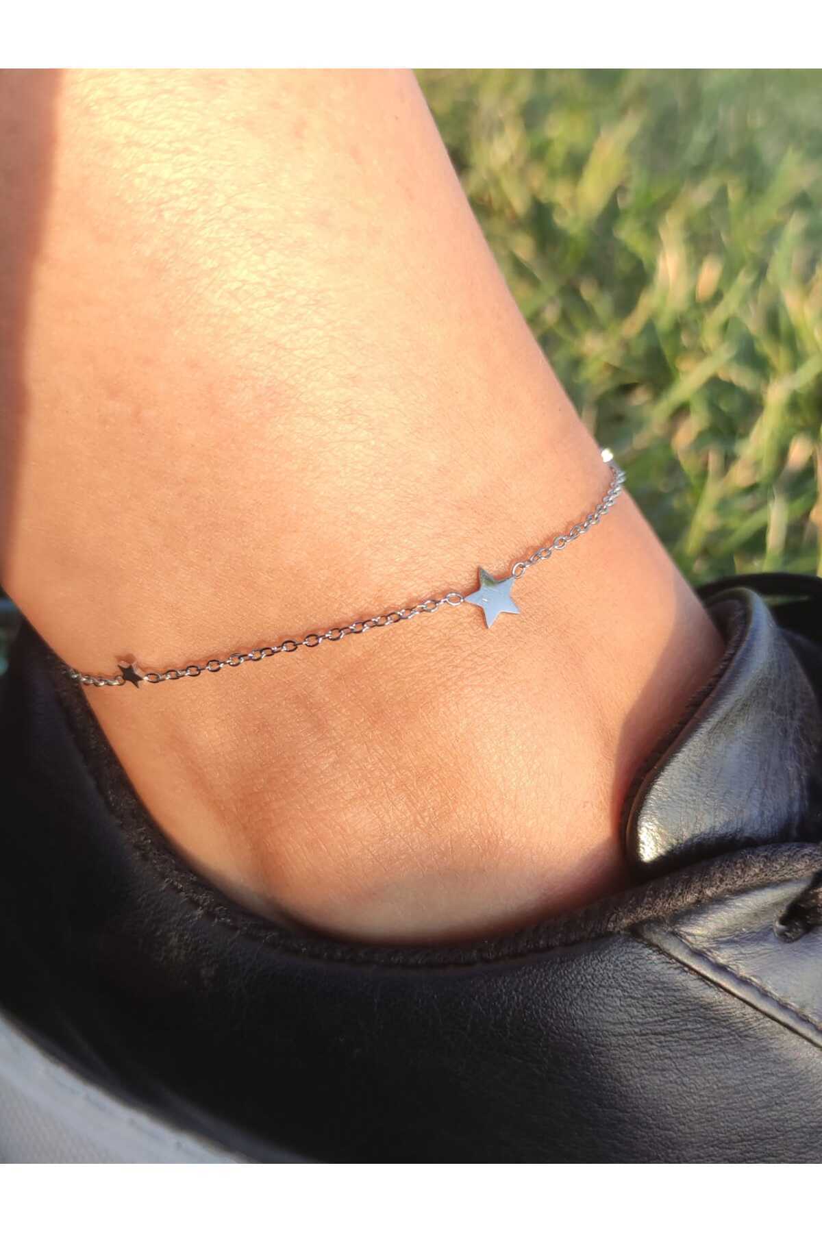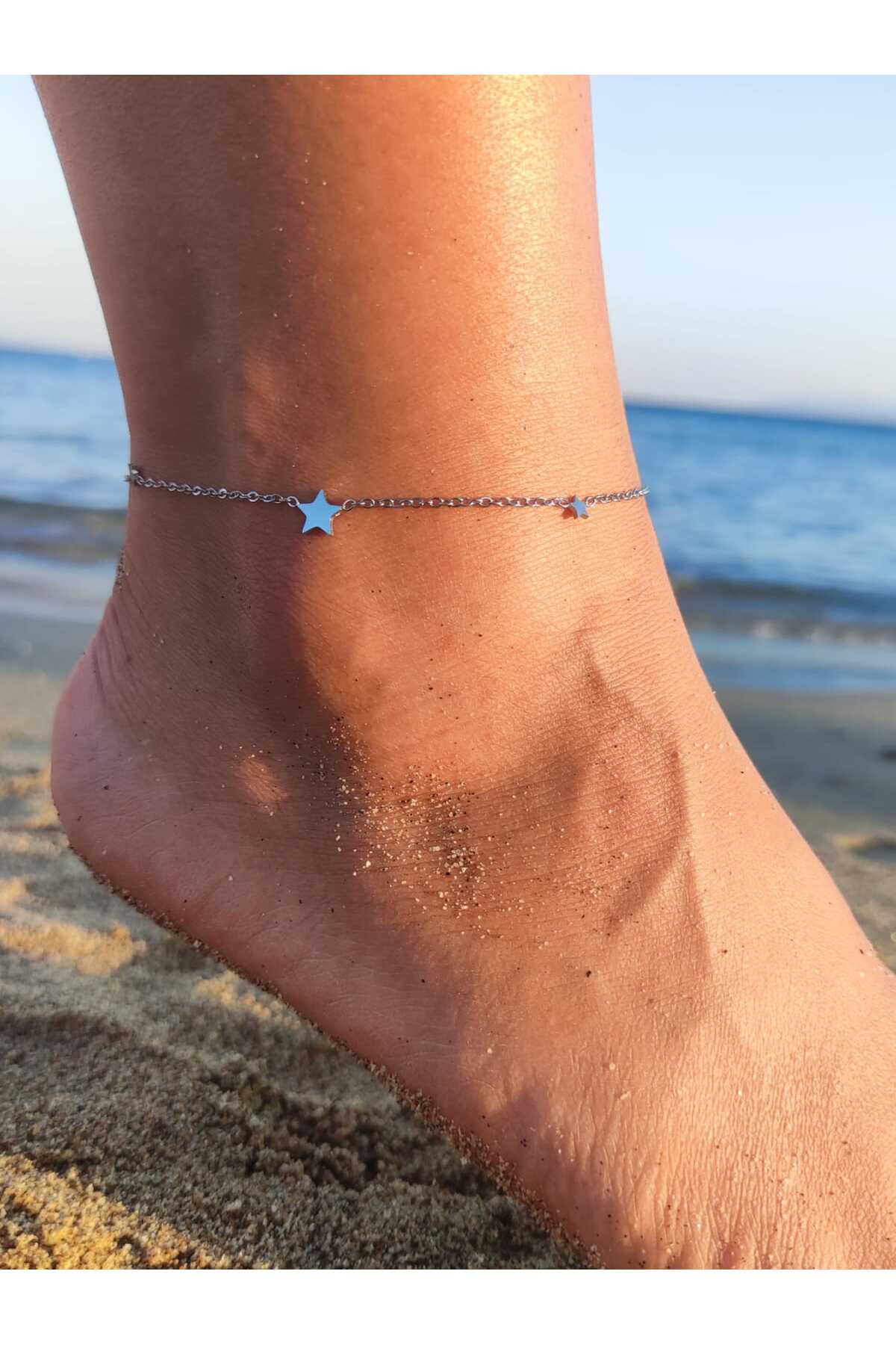زنجیر پا استیل نقره‌ای با طرح ستاره – ضد آب و بدون زنگ زدگی. کد 1757710390