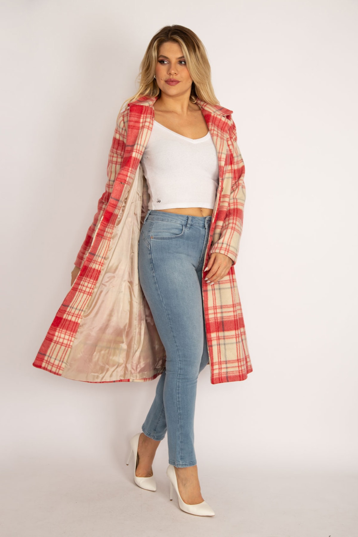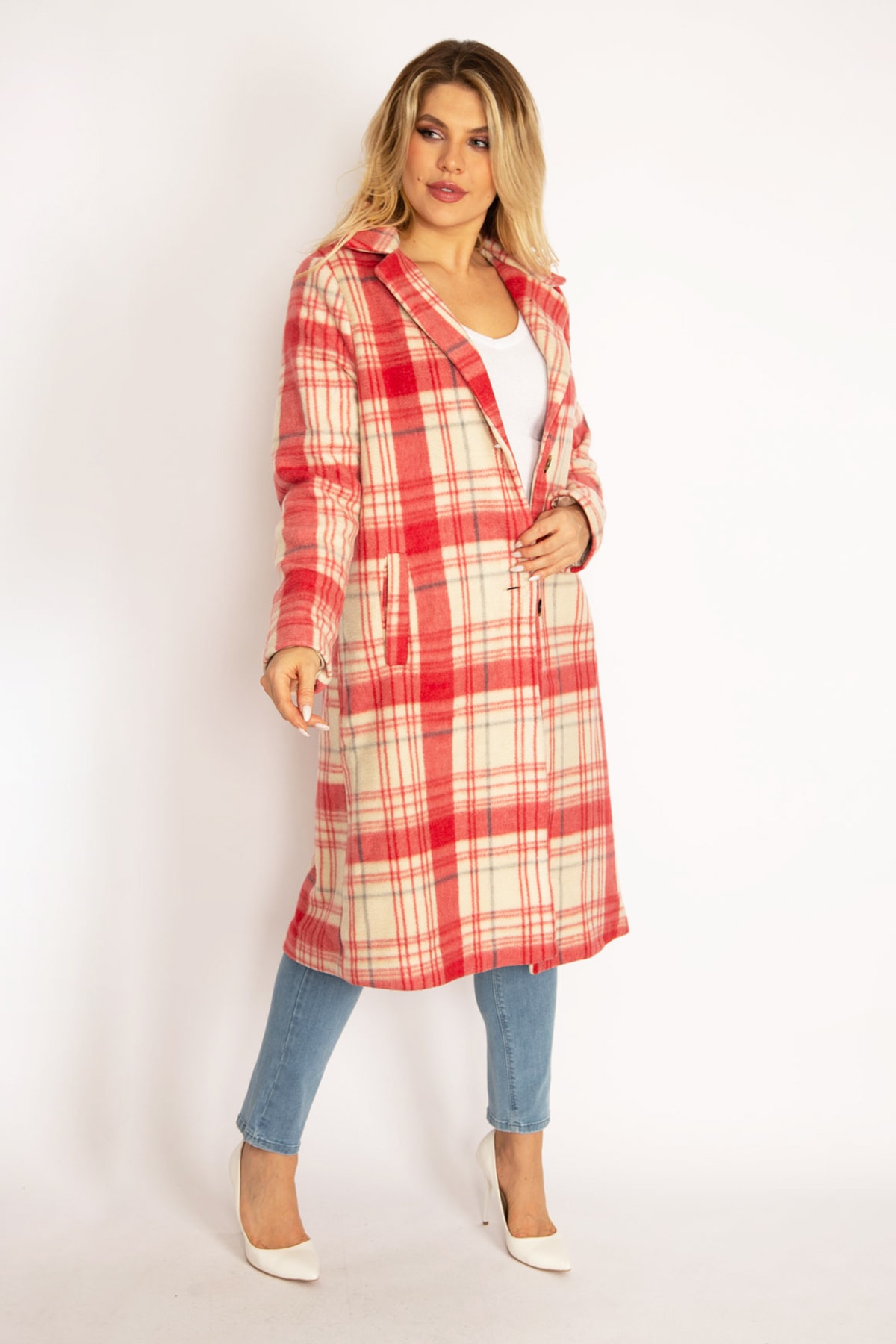 **توضیحات محصول: کاپشن زنانه بزرگ اندازه با طرح چهارخانه رنگی**