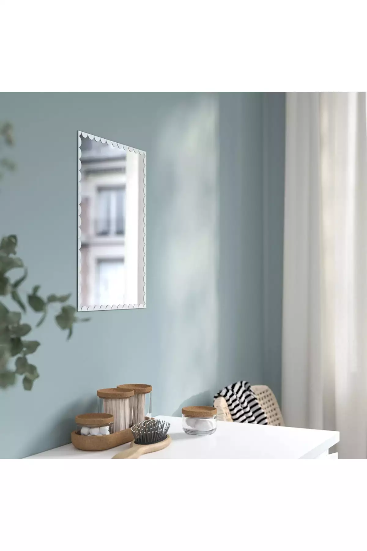 این آینه با رنگ سفید و جنس شیشهای، بهخوبی با هر نوع دکوری سازگاری دارد. طراحی مستطیلی آن باعث میشود تا به راحتی در هر فضایی نصب شود، چه در اتاق خواب، چه در سالن یا حتی در ورودی منزل.