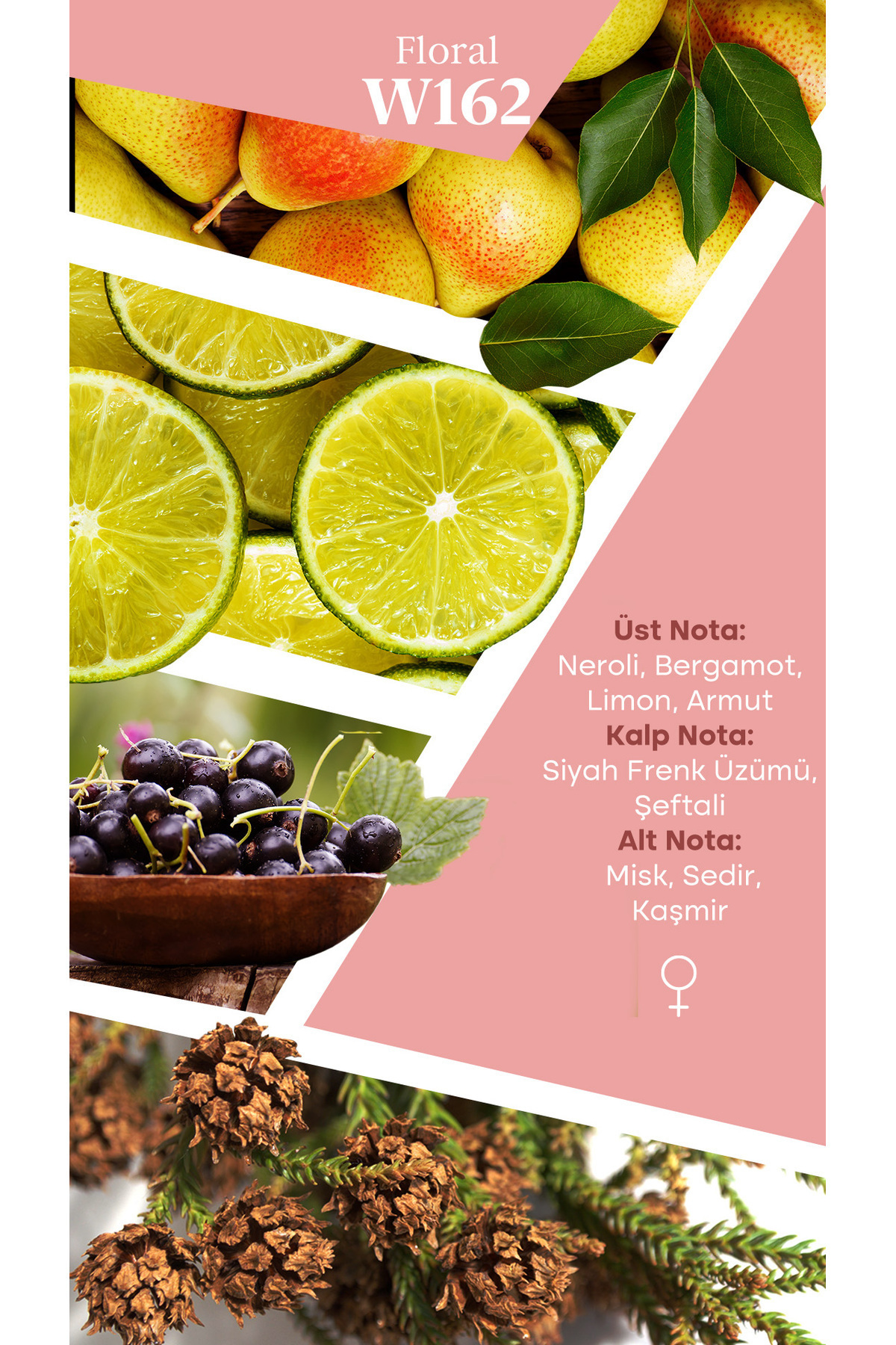 ترکیبات عطر مد W162 به گونهای طراحی شده است که احساسات مثبت را در شما بیدار کند. این عطر با نتهای اولیه شیرین و ملایم آغاز میشود که حس طراوت و شادابی را به همراه دارد. با پیشرفت به نتهای میانی، بوی گلهای پر طراوت و دلانگیز در فضا منتشر میشود که نمایانگر روحیه زنانه و لطیف شماست. در نهایت، نتهای پایه این عطر، با ماندگاری بالا و رایحهای گرم و دلنشین، تأثیری ماندگار را از خود به جای میگذارد.
