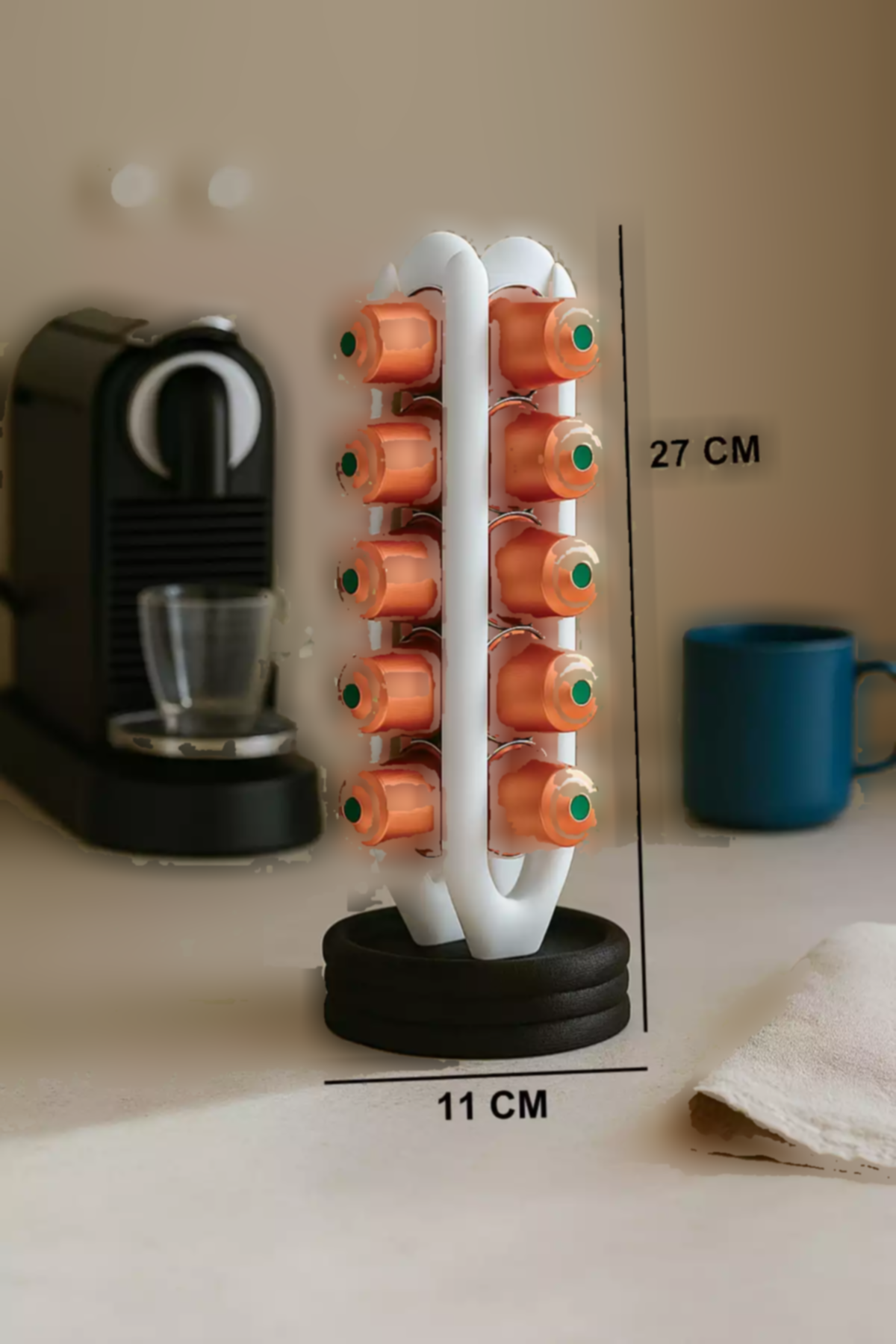 رسانه نگهدارنده کپسول قهوه نسپرسو یک محصول کارآمد و زیبا است که به شما اجازه میدهد تا کپسولهای قهوهتان را بهطور منظم و بهراحتی در دسترس داشته باشید. این سازماندهنده طراحی شده است تا نه تنها فضایی برای نگهداری کپسولها فراهم کند، بلکه دکور قهوهخانه شما را نیز زیباتر کند. با توجه به طراحی مدرن و جذاب آن، این محصول به راحتی با سایر ابزارها و دکوراتورهای قهوهخانه شما ترکیب میشود و جلوهای خاص به فضای شما میبخشد.
