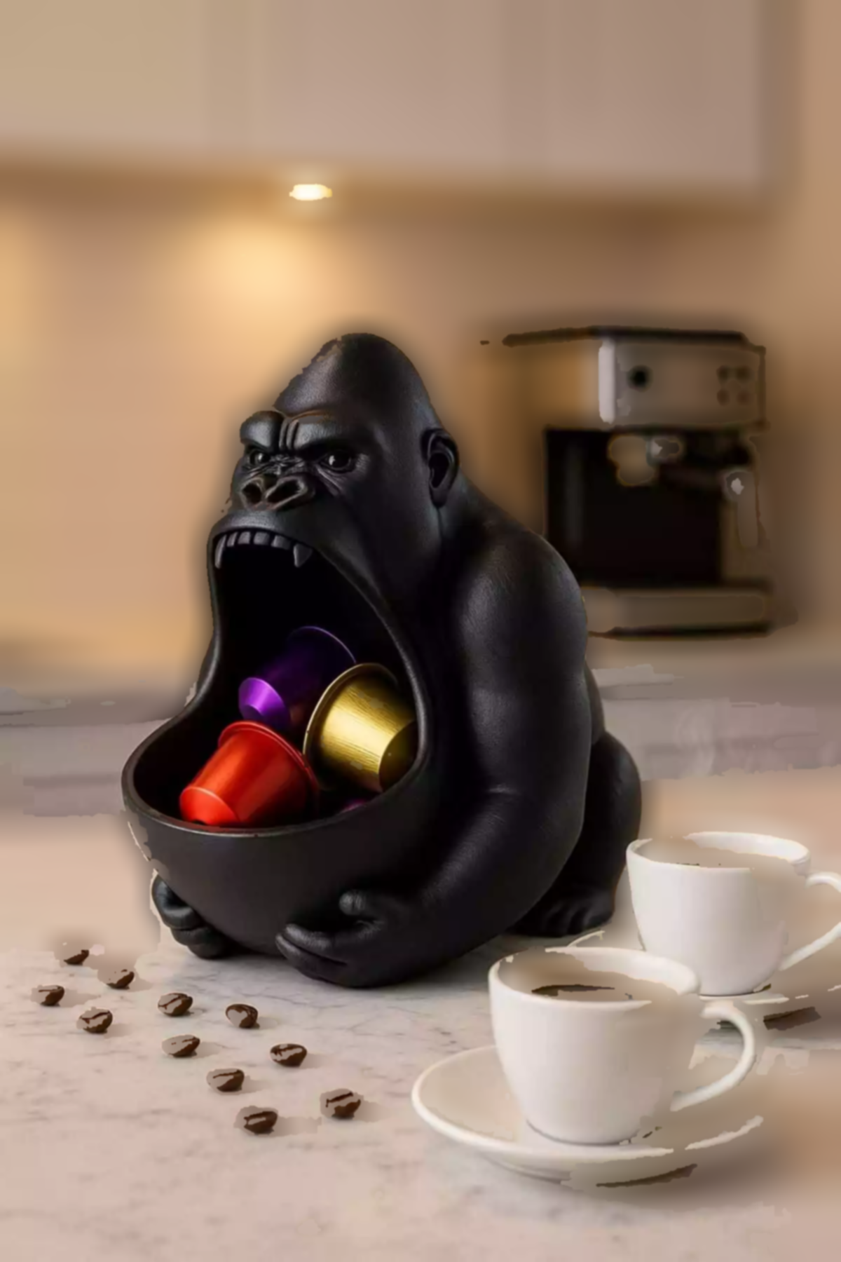 جعبه نگهدارنده قهوه کپسولی طرح گوریل یک اکسسوری جذاب و کاربردی برای هر آشپزخانه است که با طراحی منحصر به فرد خود، علاوه بر سازماندهی فضای آشپزخانه، به زیبایی دکوراسیون آن نیز میافزاید. این محصول با الهام از شکل گوریل، توجه هر بینندهای را به خود جلب میکند و میتواند به عنوان یک عنصر تزئینی در کنار کارکرد خود عمل کند.