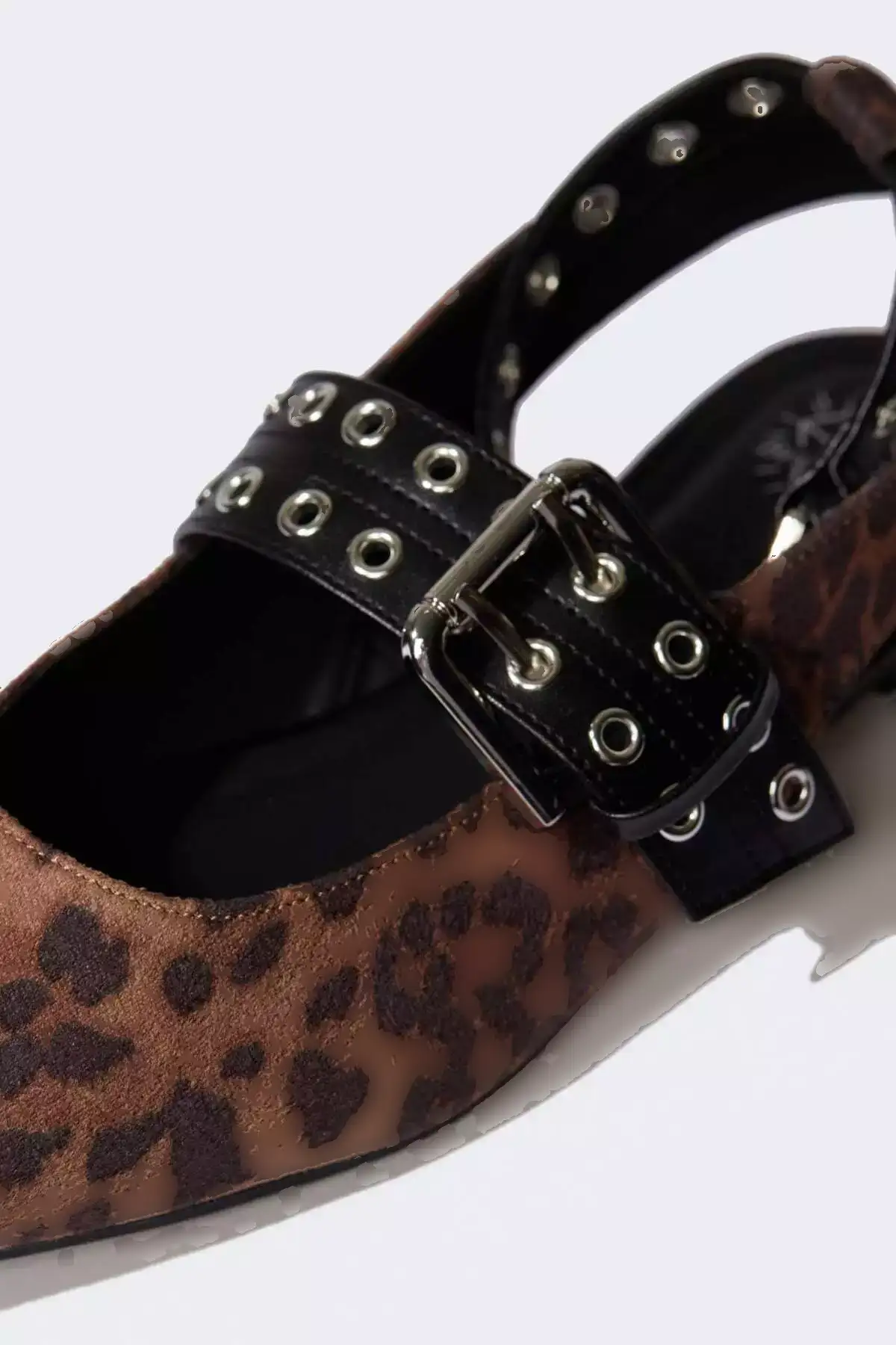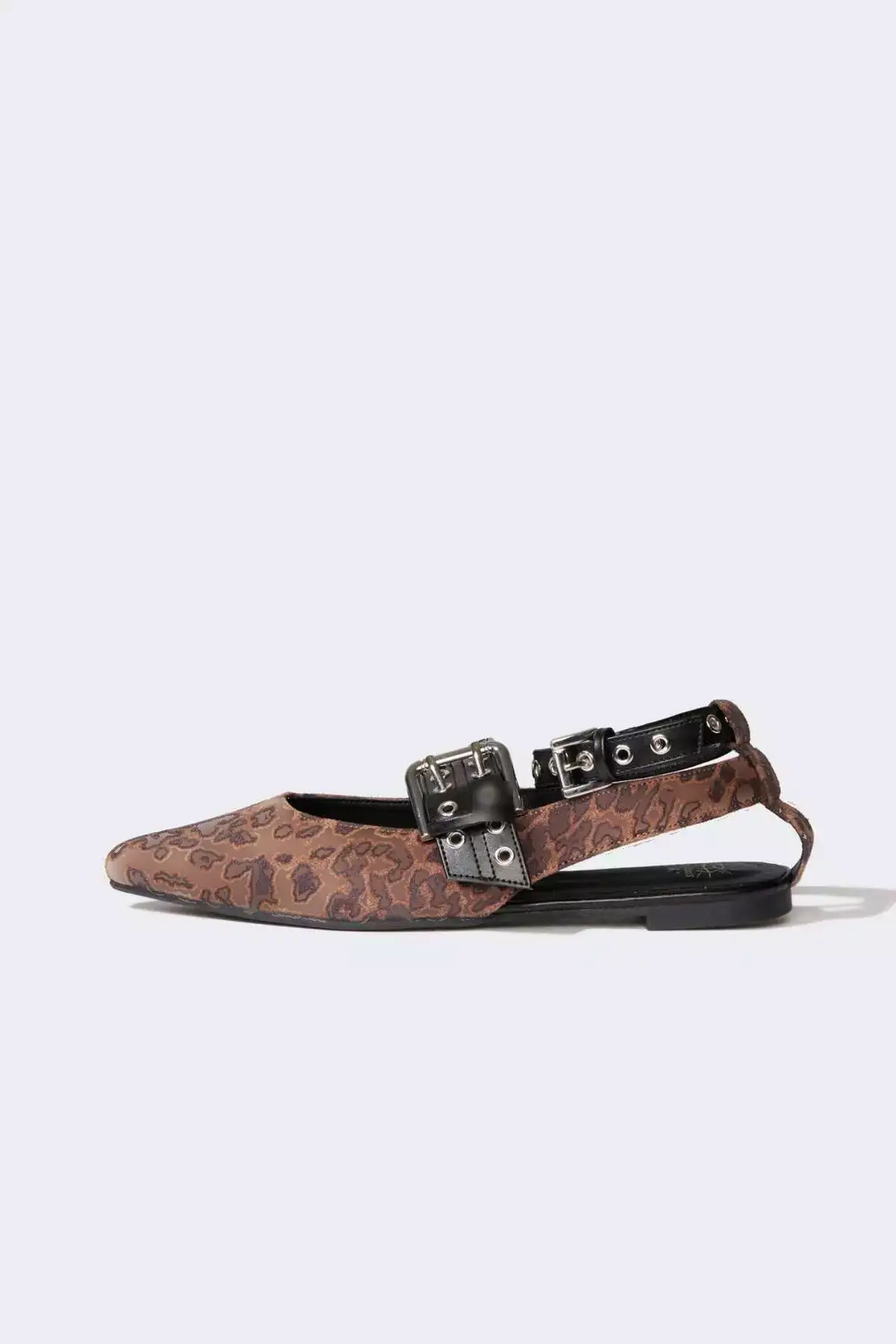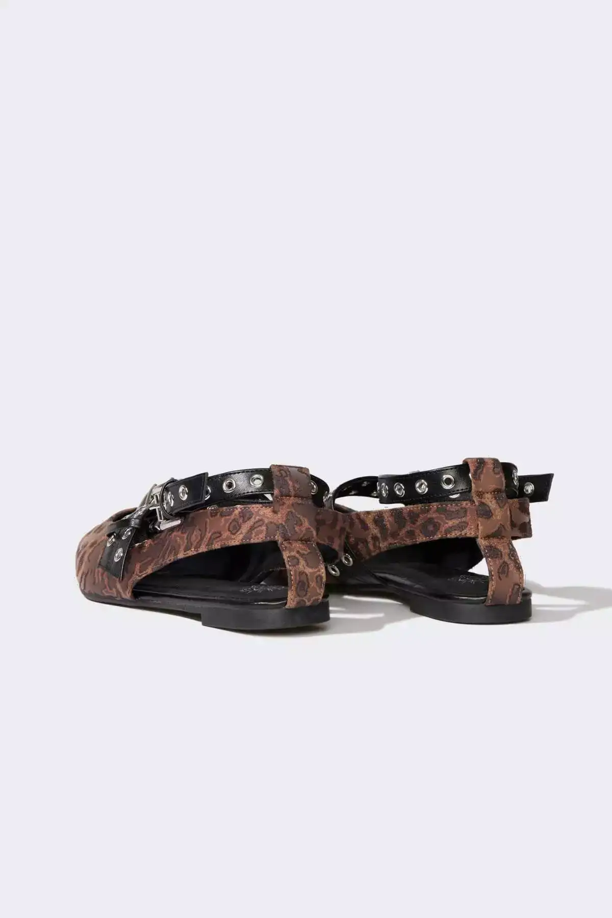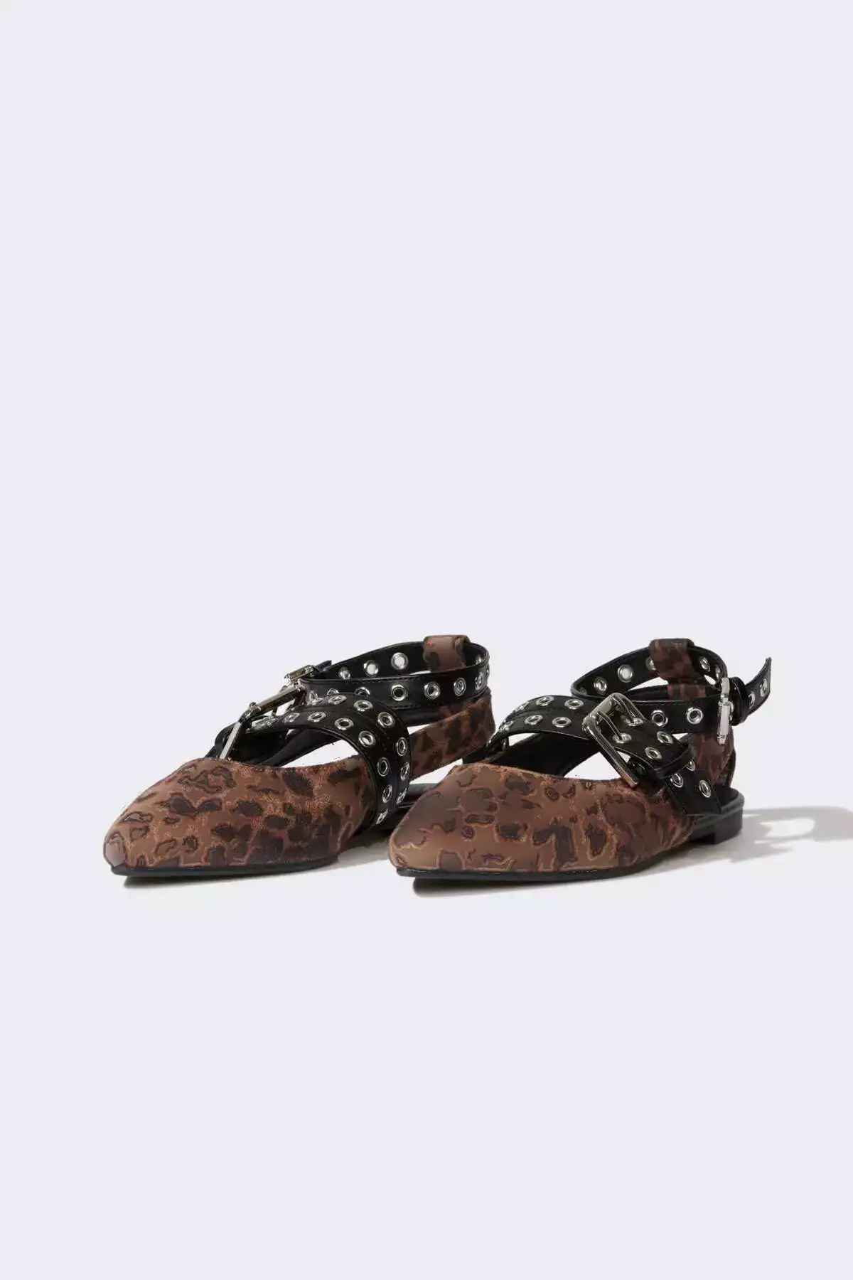بابت زنانه طرح پلنگی کفش بالهای ته صاف چرم مصنوعی E2416AX25SM برند Defacto