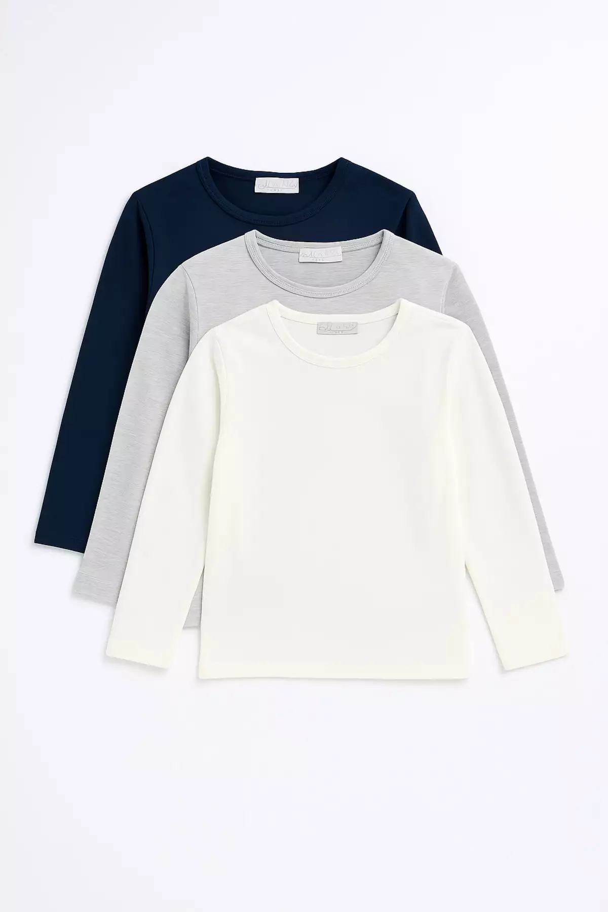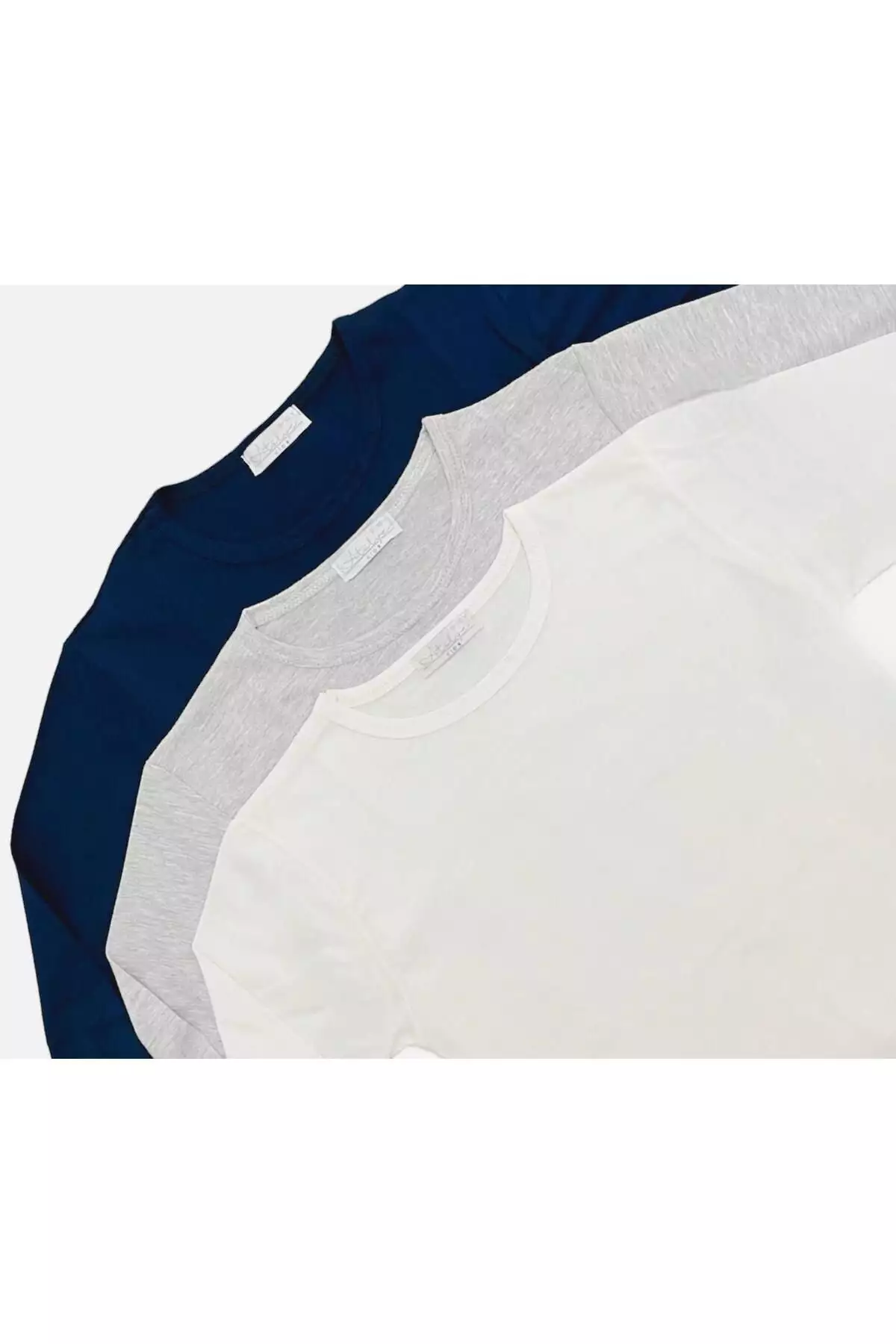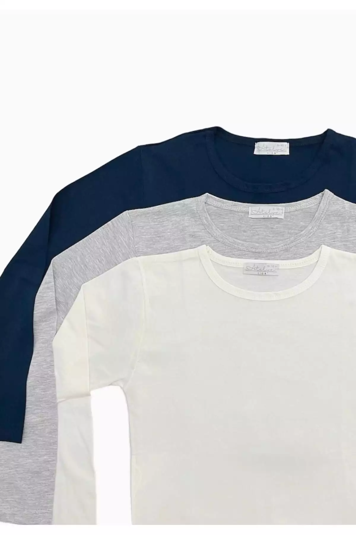 بادی تیشرت سه تایی آستین بلند پسرانه برای استفاده روزمره، مدرسه و ورزش در رنگهای کرم، سرمهای و خاکستری برند atölye kids