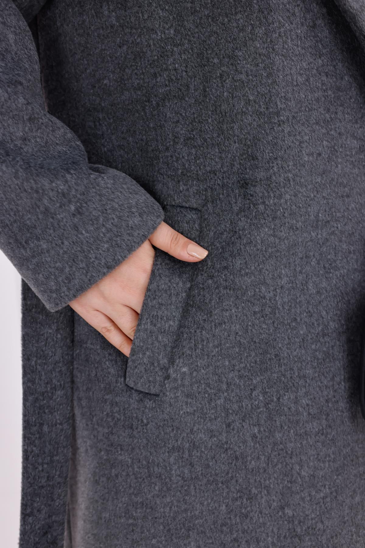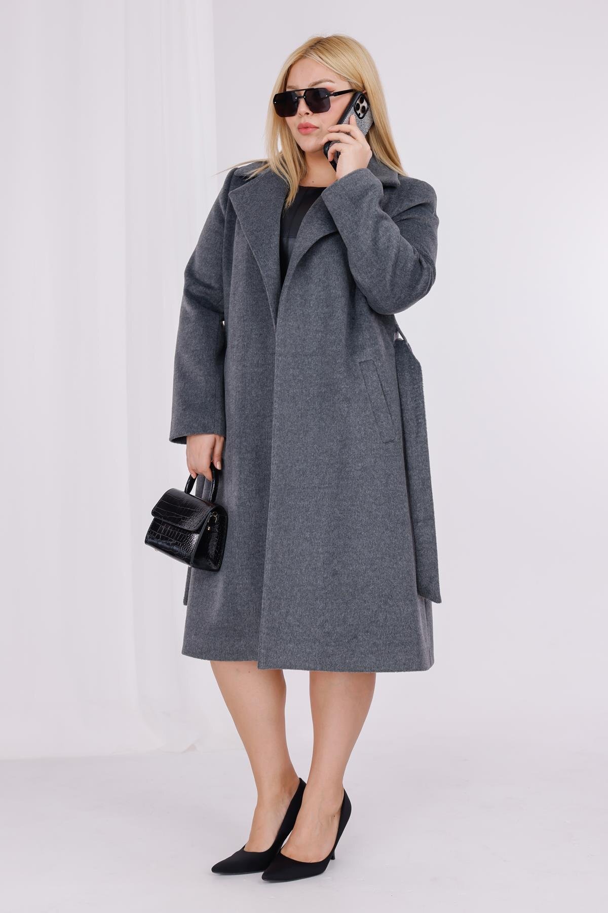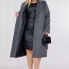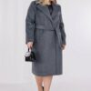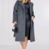 بارانی بزرگ‌ سایز زنانه با جزئیات کمربند و آستر از جنس پشمی خاکستری برند Mooi XXL – 1029475245