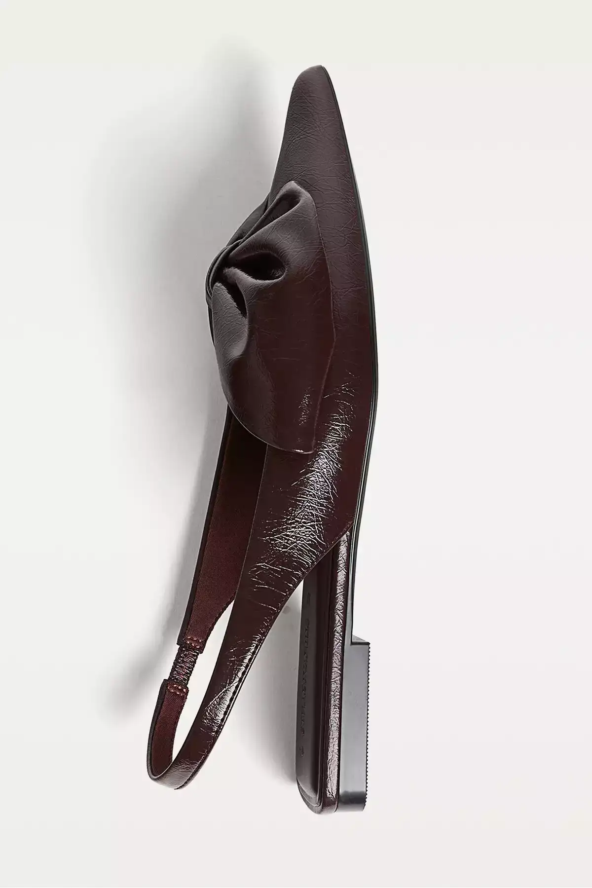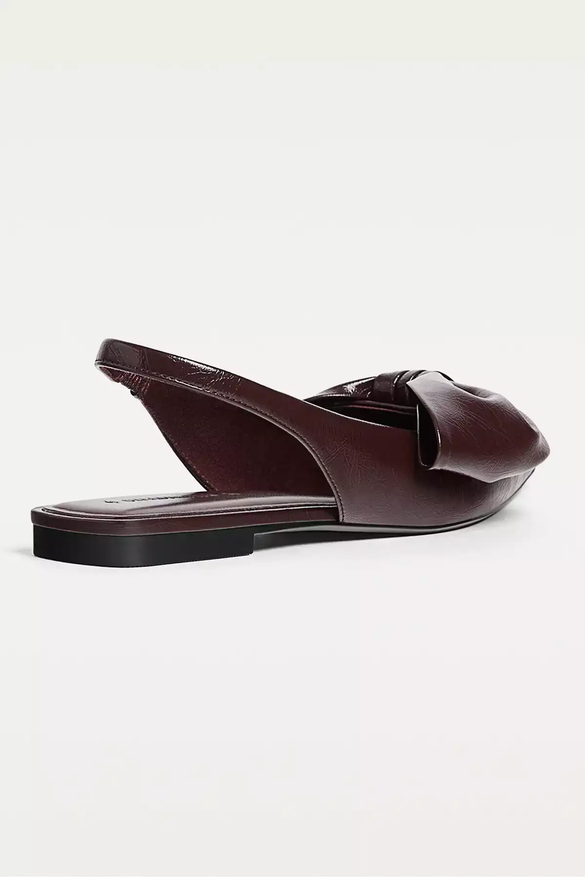 کفش باله پاشنه باز.موجود در رنگ شرابی.جزئیات کمان در بالا.بینی تیز.