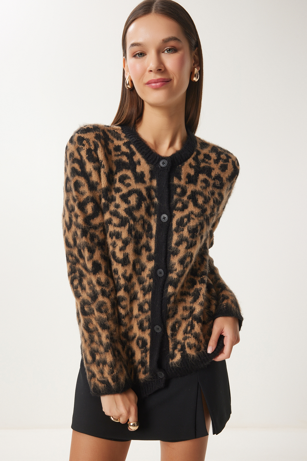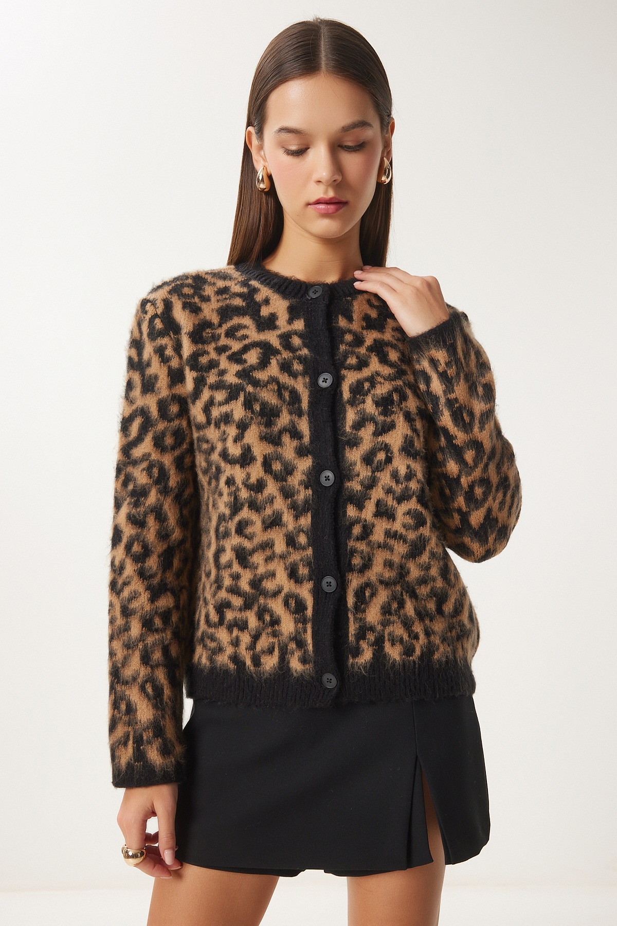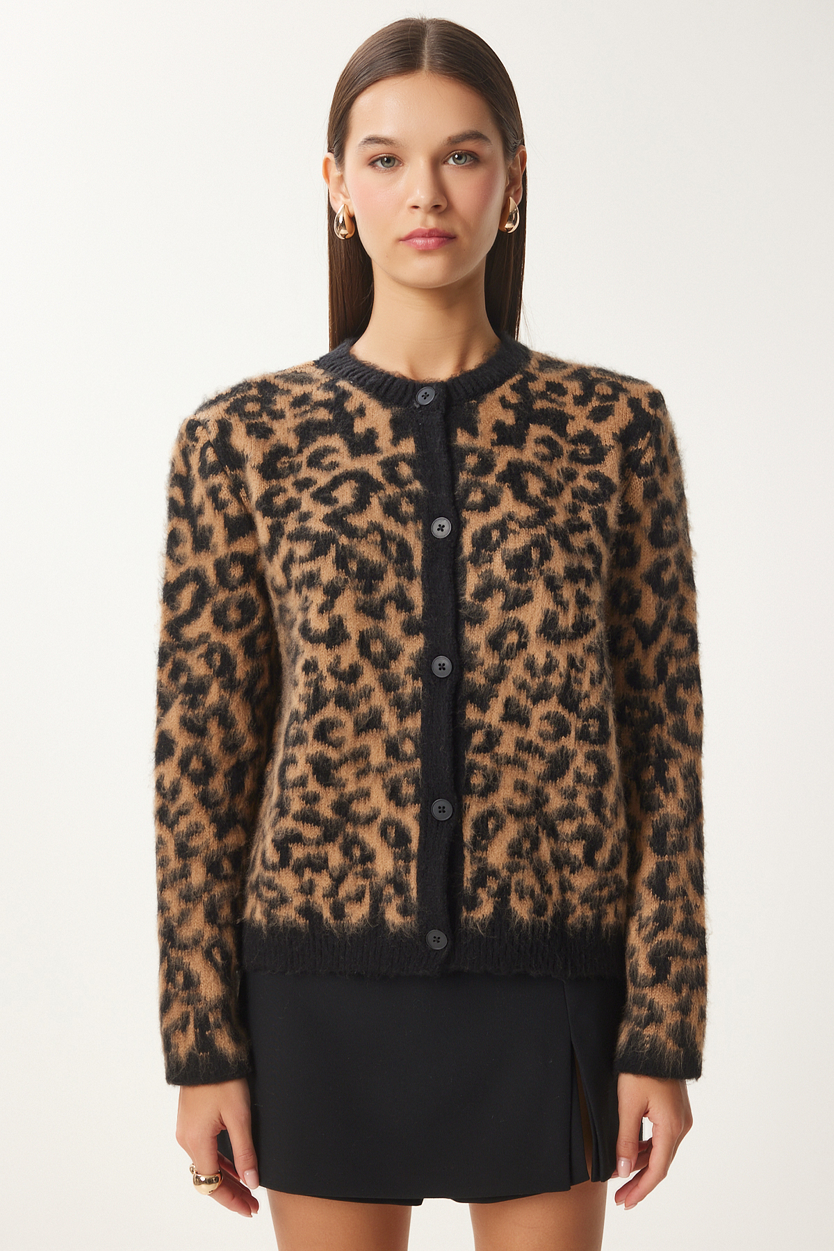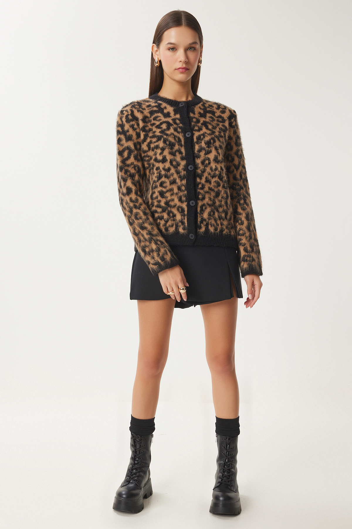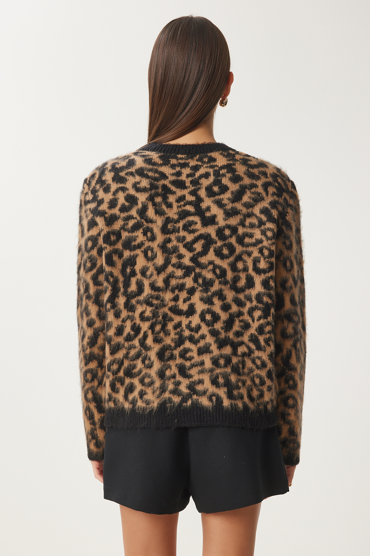 بافتنی کوتاه طرح پلنگی قهوه‎ای مشکی زنانه برند Happiness İstanbul کد 1731045414