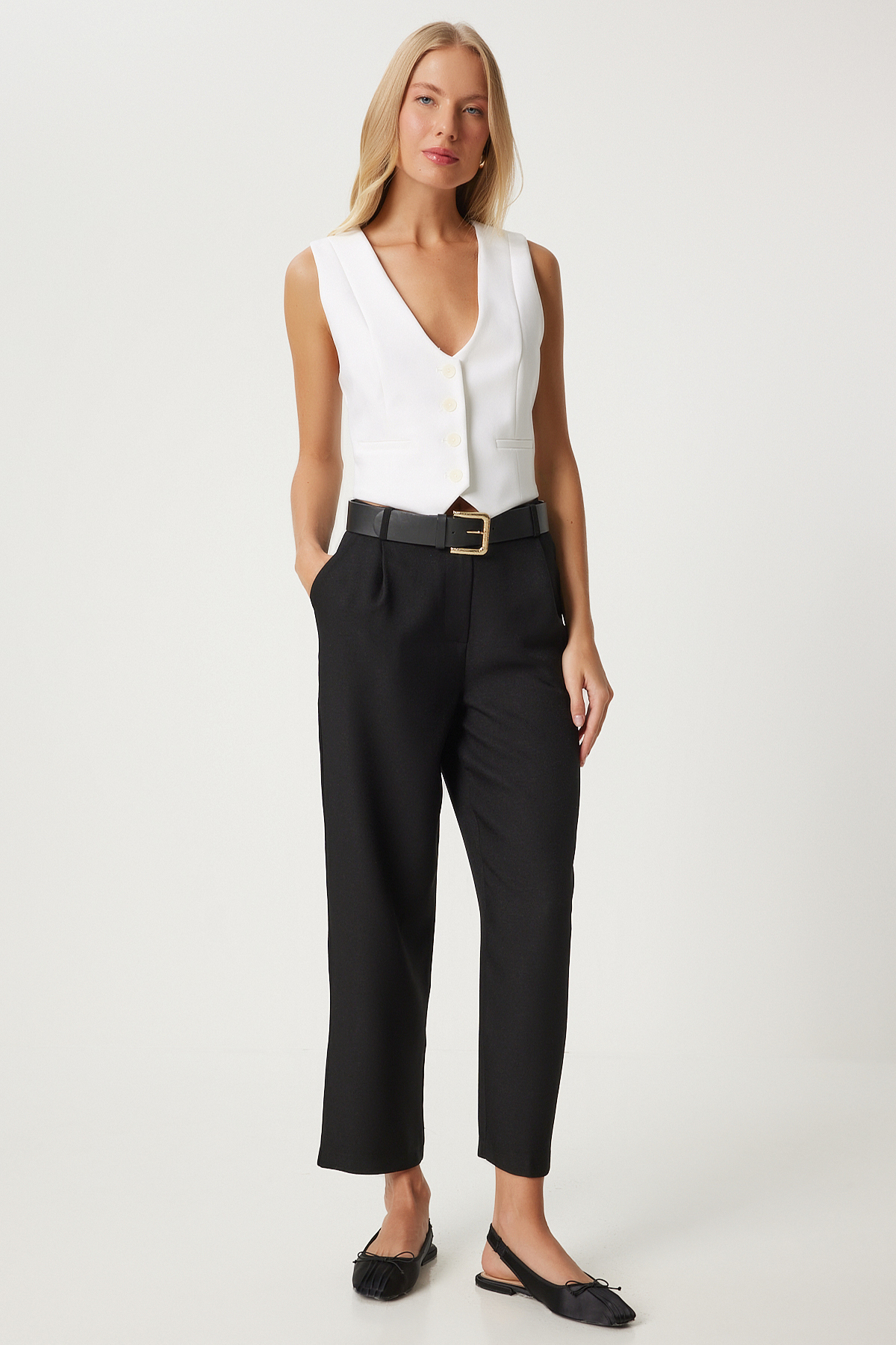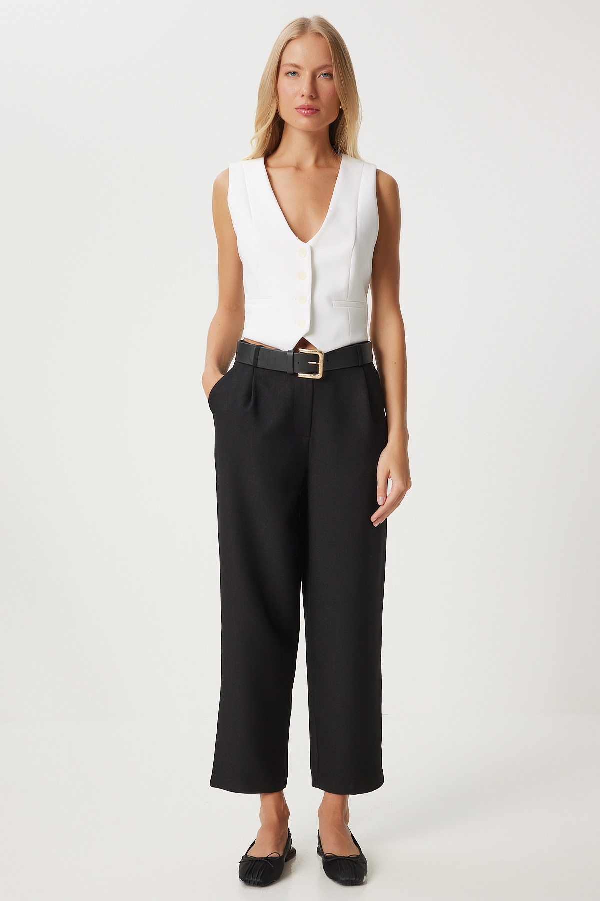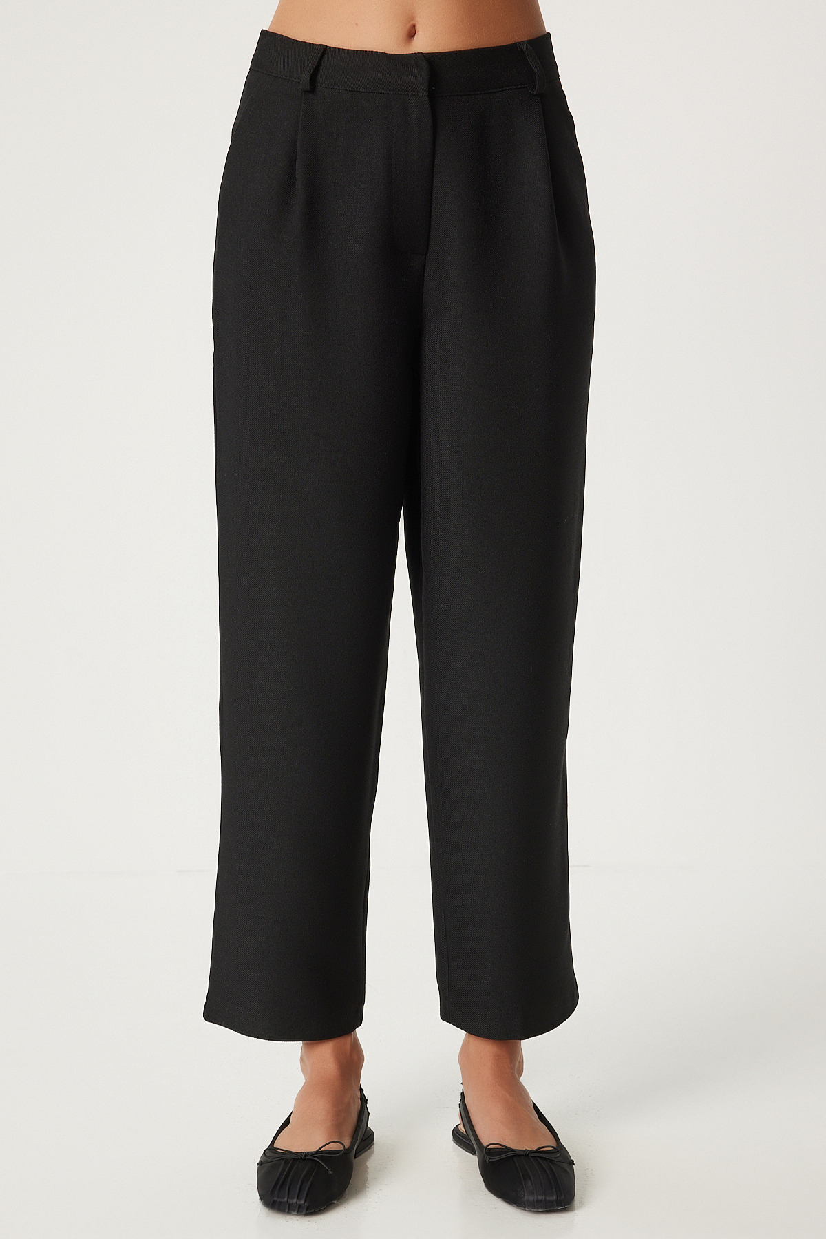 بافته شده پاچه لوله تفنگی شلوار مشکی زنانه برند Happiness İstanbul کد 1729876870