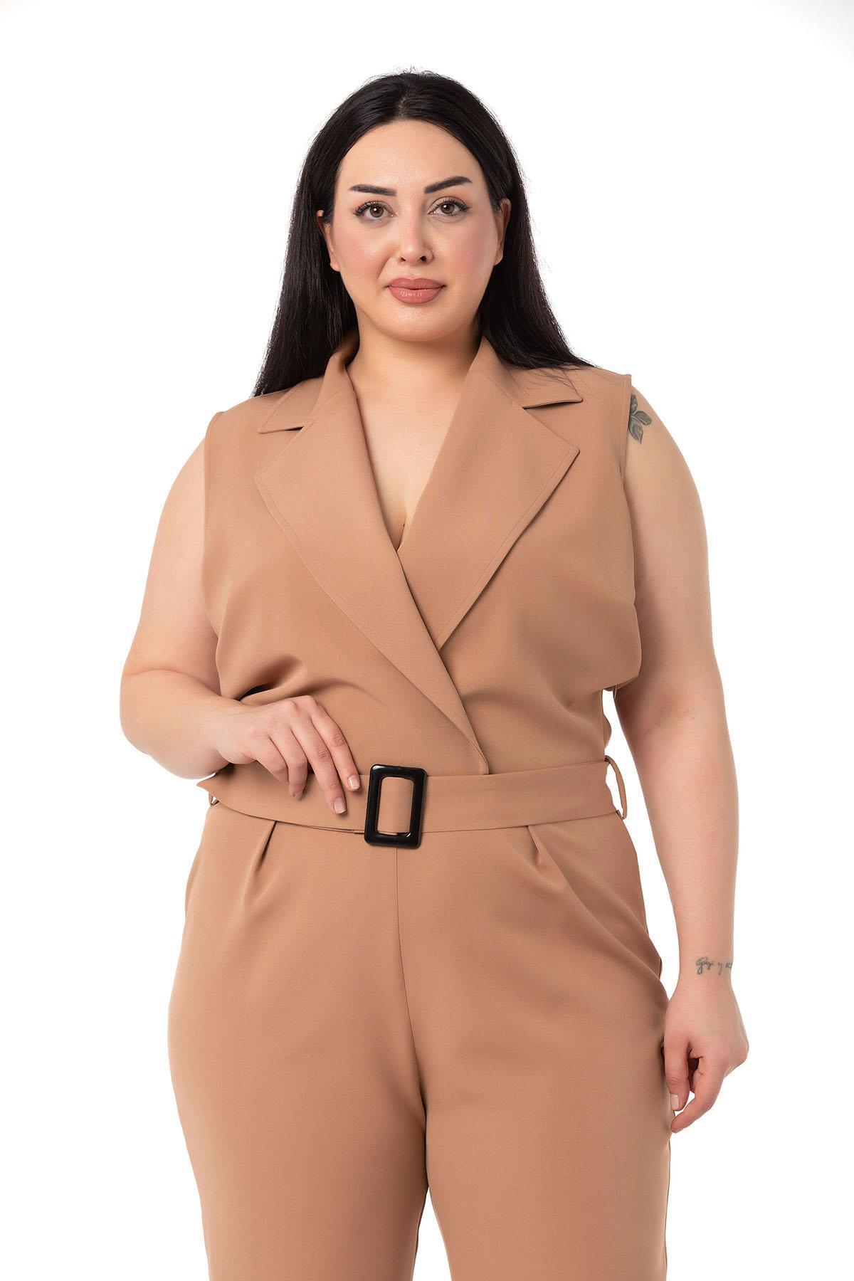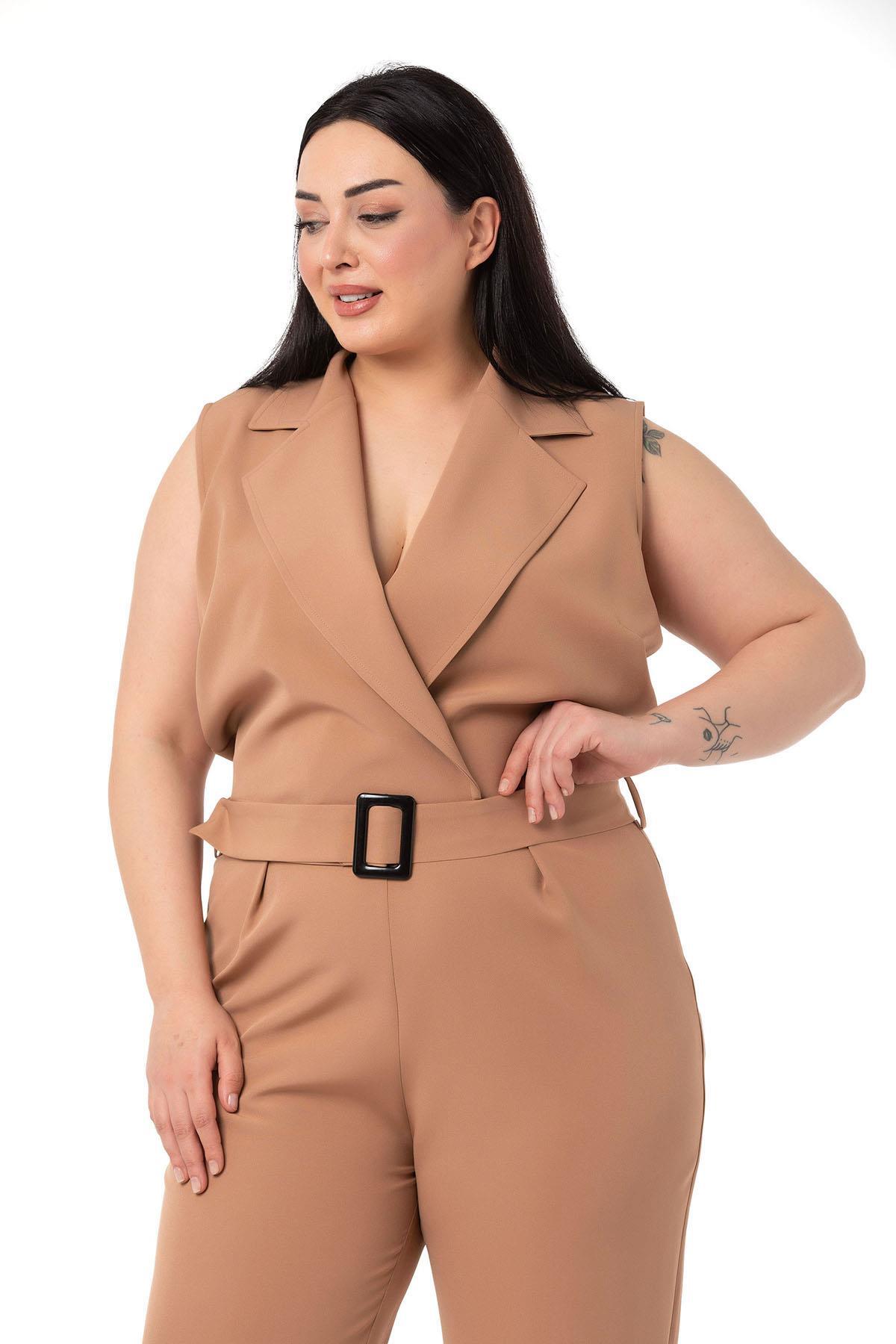 بزرگ سایز توری با کمربند و زیپ بستهشونده در رنگ بژ برند DISENTIS MODEST
