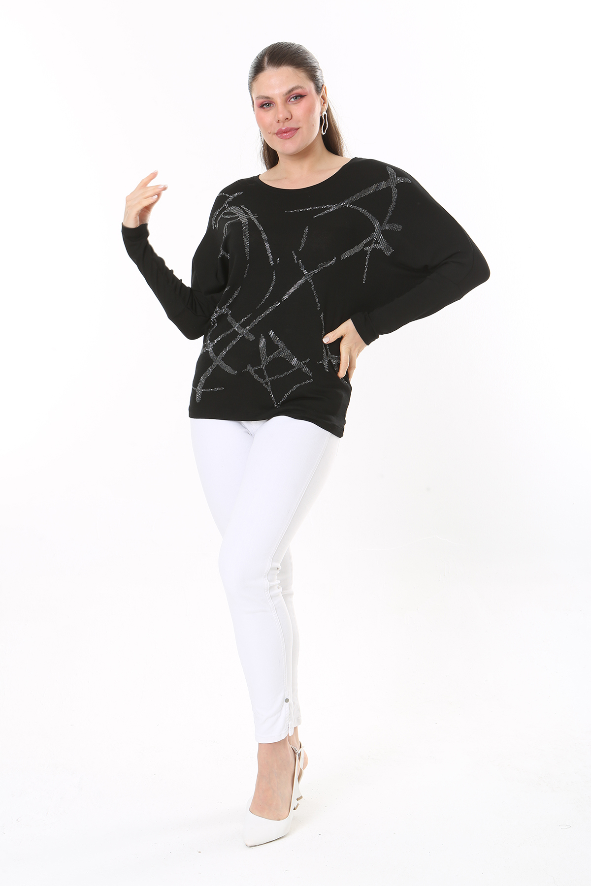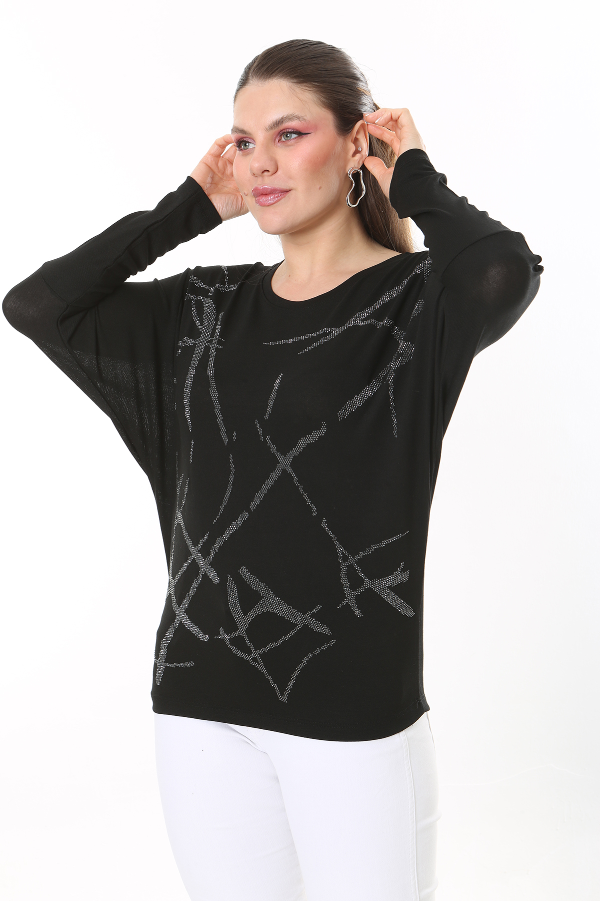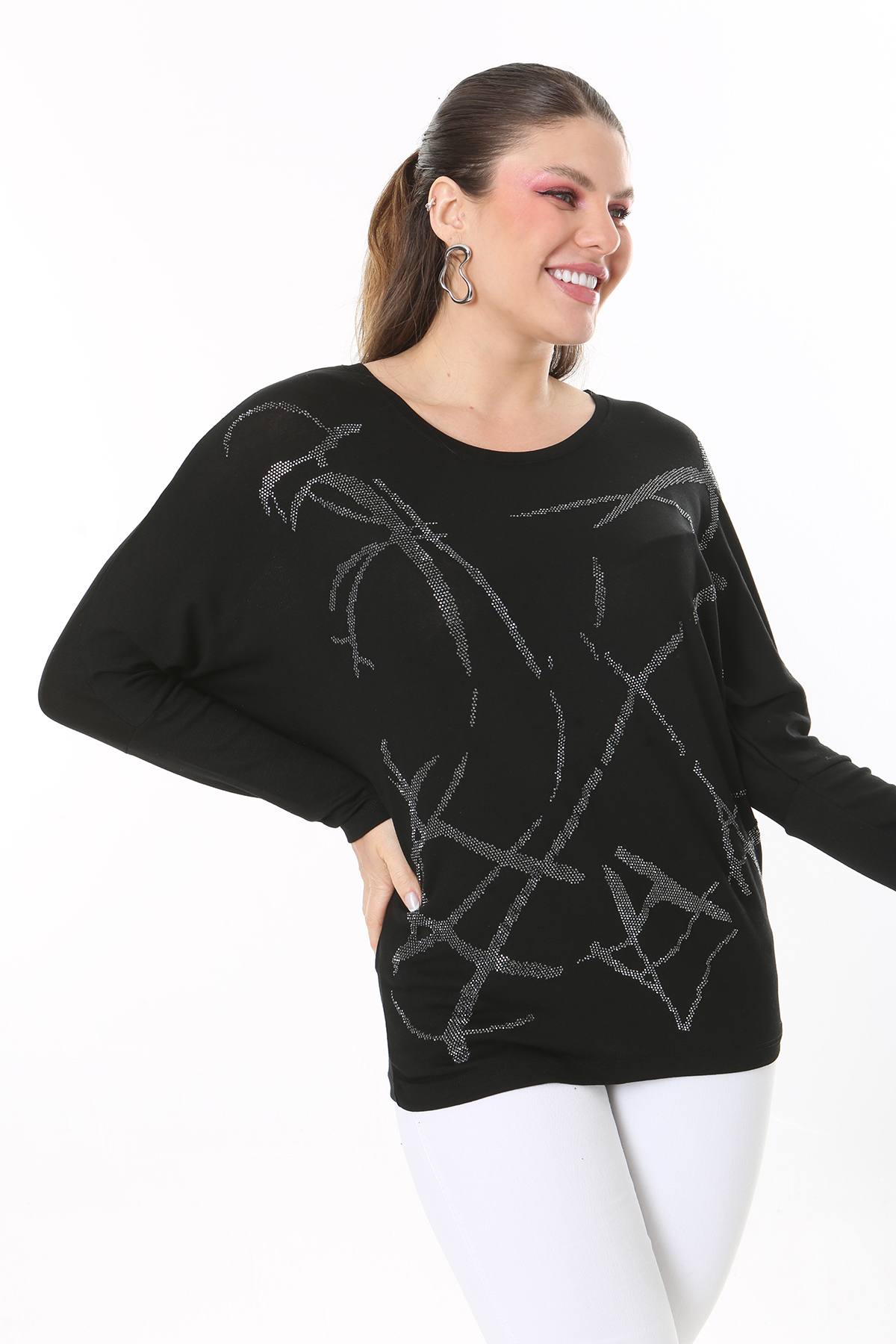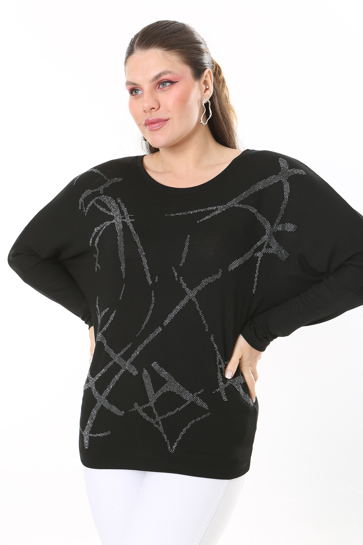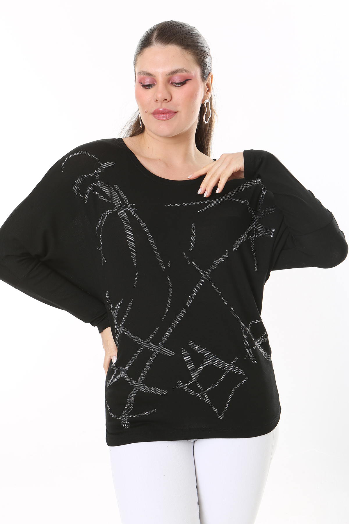 بلوز زنانه بزرگ سایز سیاه با جزئیات سنگ دار و آستین خفاشی (کد 65N37689) انتخابی ایدهآل برای خانمهایی است که به دنبال راحتی و استایل زیبا هستند. طراحی این بلوز به گونهای است که به راحتی بر روی اندامهای مختلف نشسته و زیبایی خاصی را به نگهداری میدهد. همچنین، رنگ سیاه آن به سادگی با دیگر اجزای کمد لباس ست میشود و بهراحتی میتوان آن را با شلوارها یا دامنهای متنوع ترکیب کرد.
