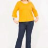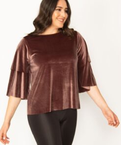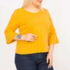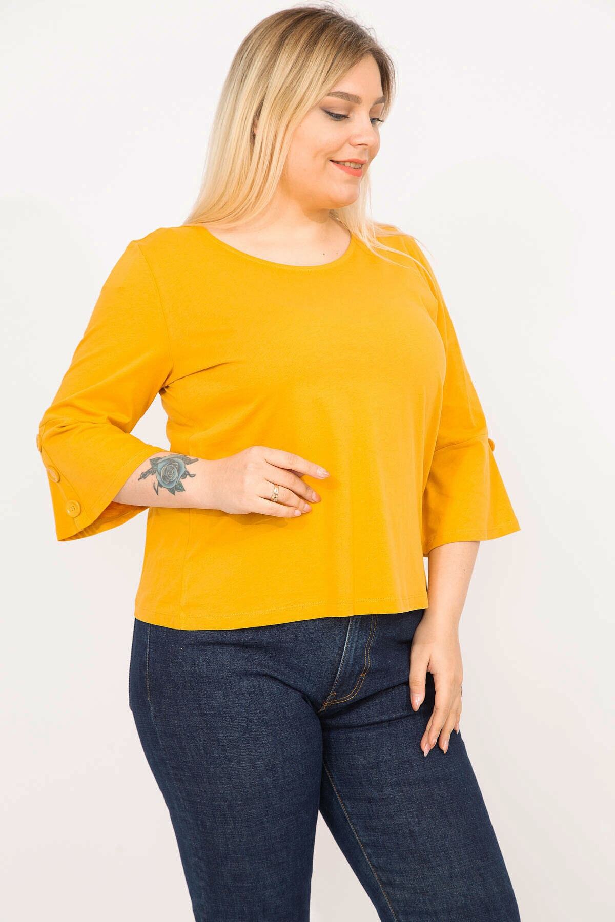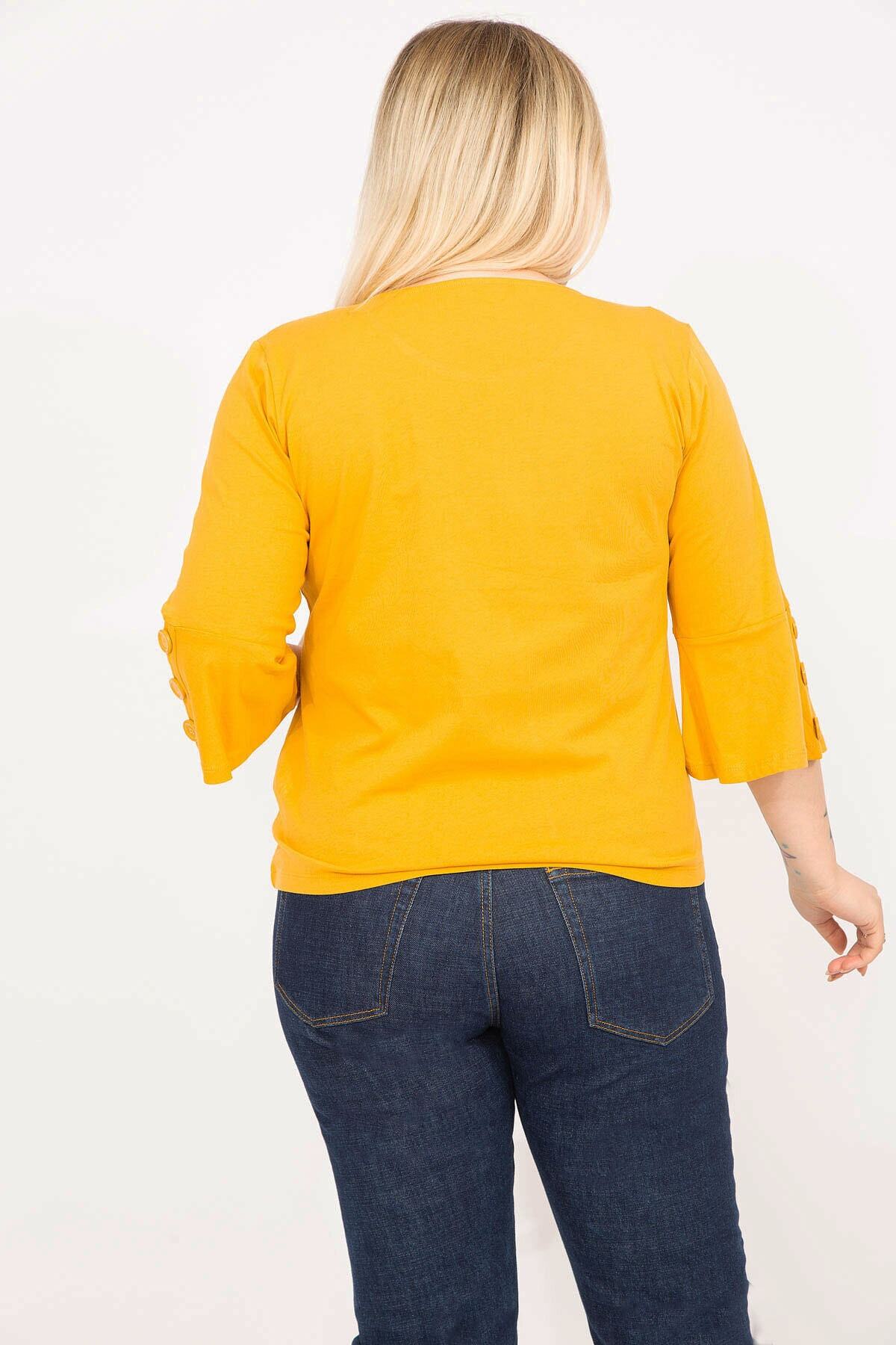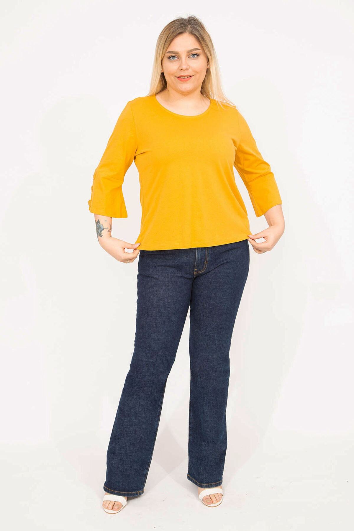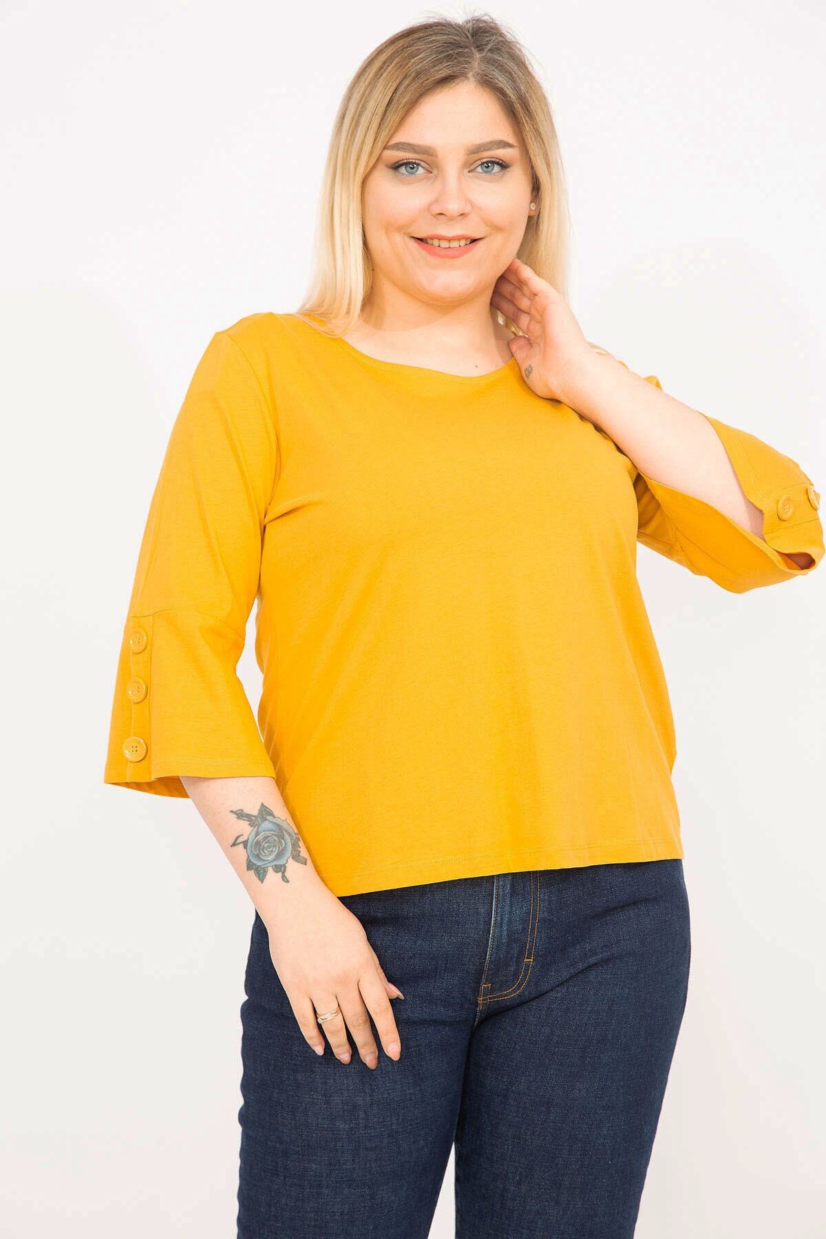 بلوز زنانه بزرگ سایز با پارچه پنبه‌ای و آستین‌های تزیینی دکمه‌دار. کد 1742307367
