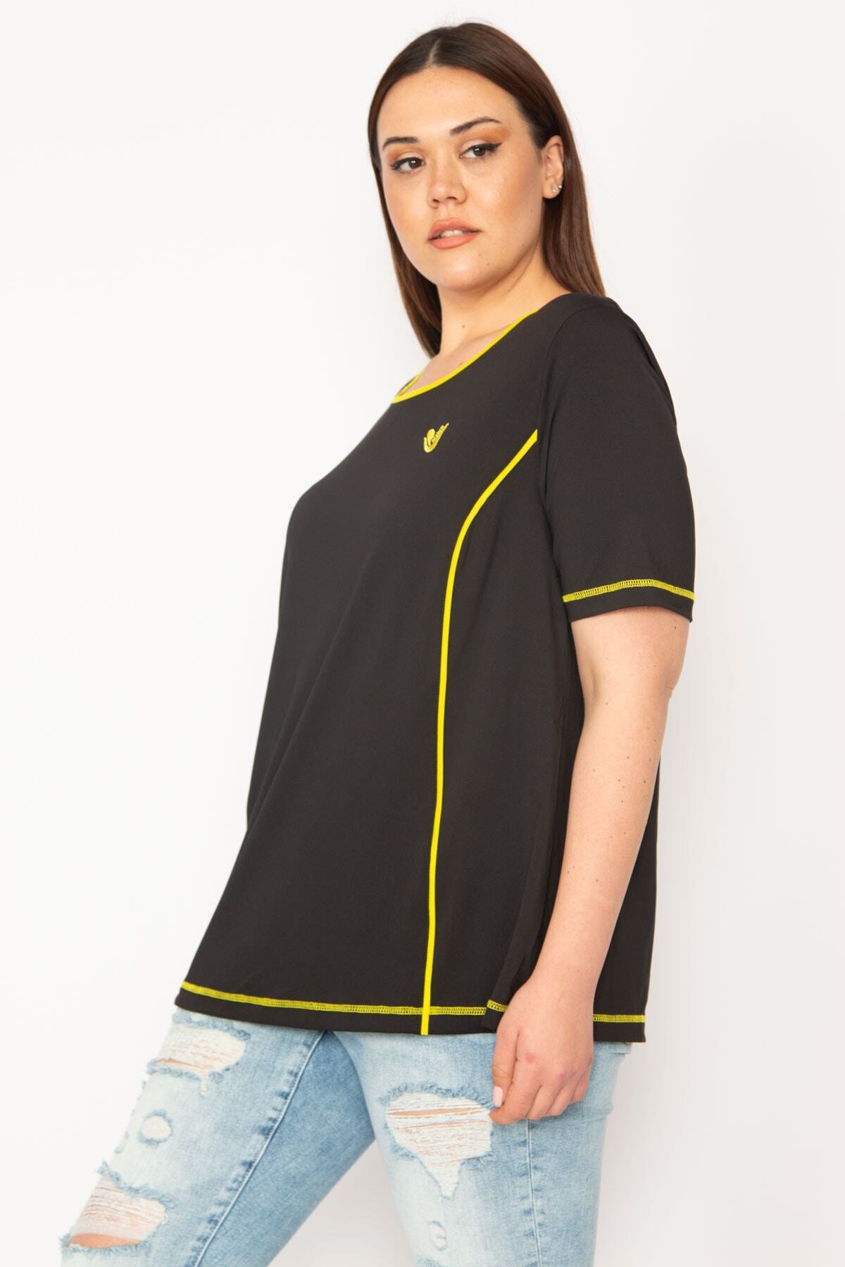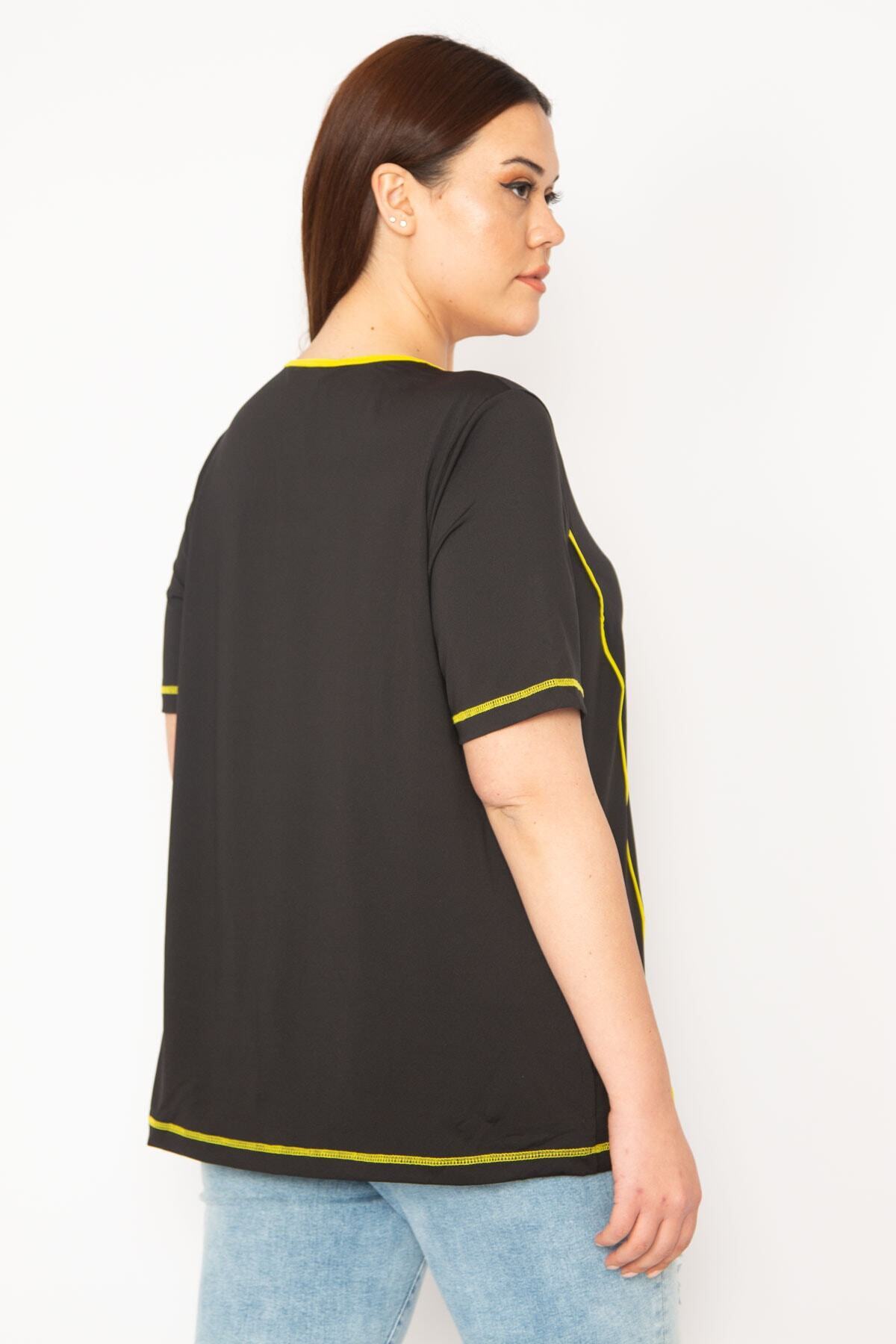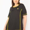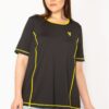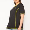 یکی از ویژگیهای بارز این بلوز، یقه مشکی آن است که ظاهری شیک و مدرن به آن میبخشد. نوار بوردی در کنار یقه، جلوهای خاص و منحصر بهفرد به بلوز اضافه کرده است که میتواند به سادگی با سایر لباسهای ورزشی شما ترکیب شود. این طراحی به خانمهای بزرگبدن کمک میکند تا در هنگام پوشیدن این بلوز احساس راحتی و اعتماد به نفس بیشتری داشته باشند.