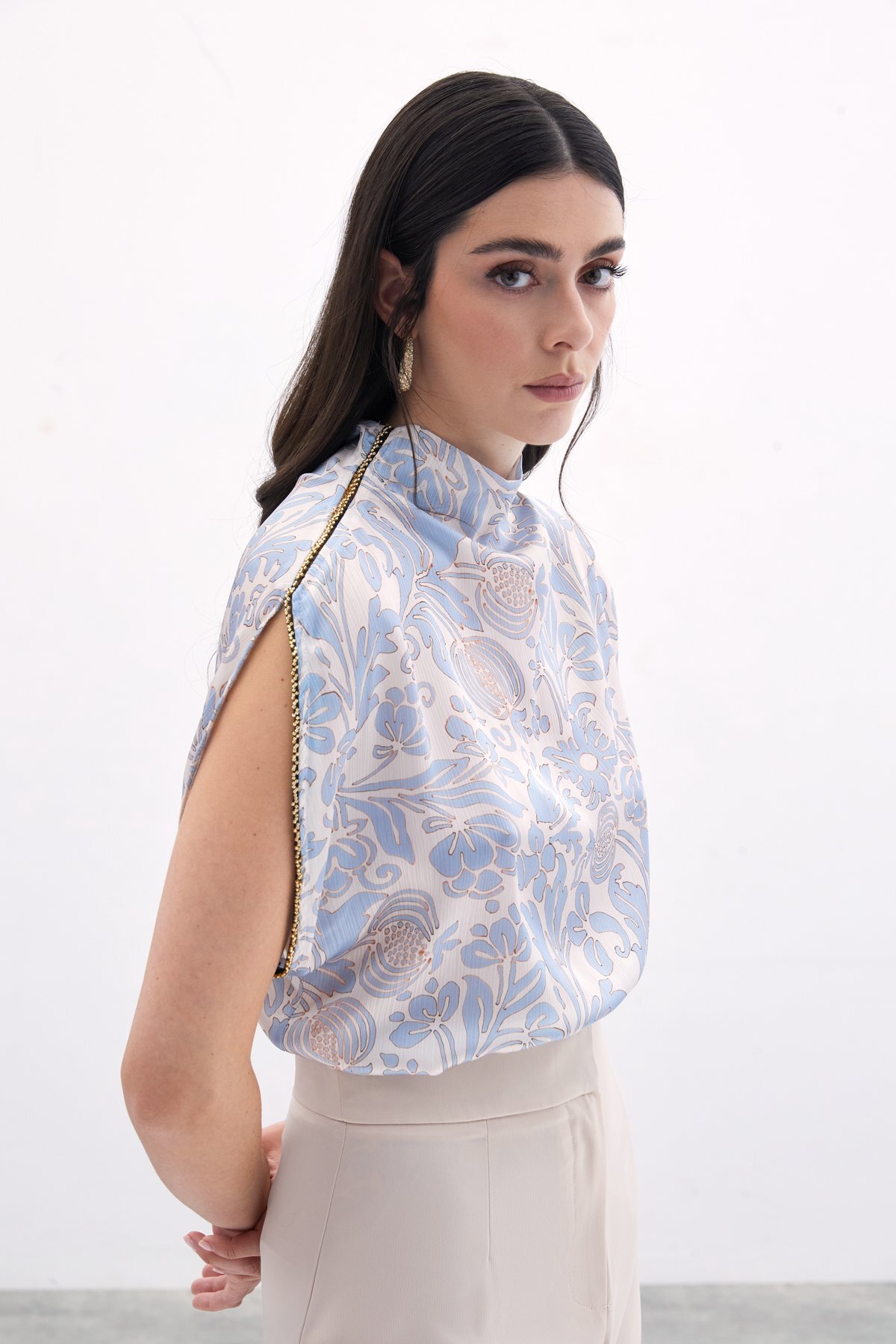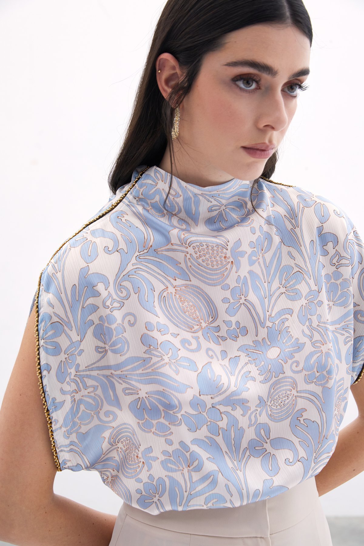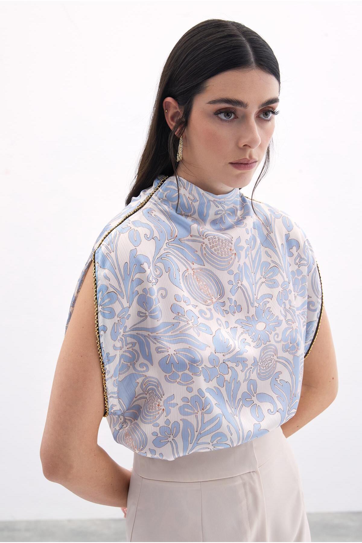بلوز آستین خفاشی با تزئینات – آبی کد 1753365133 به راحتی با شلوار جین، دامن یا شلوارکهای مختلف قابل ست شدن است و میتوانید از آن در انواع مناسبتها استفاده کنید. از یک ملاقات دوستانه در کافه گرفته تا یک روز خرید، این بلوز گزینهای ایدهآل برای شما خواهد بود. تنها کافیست آن را با اکسسوریهای مناسب ترکیب کرده و ظاهری زیبا و دلنشین بسازید.