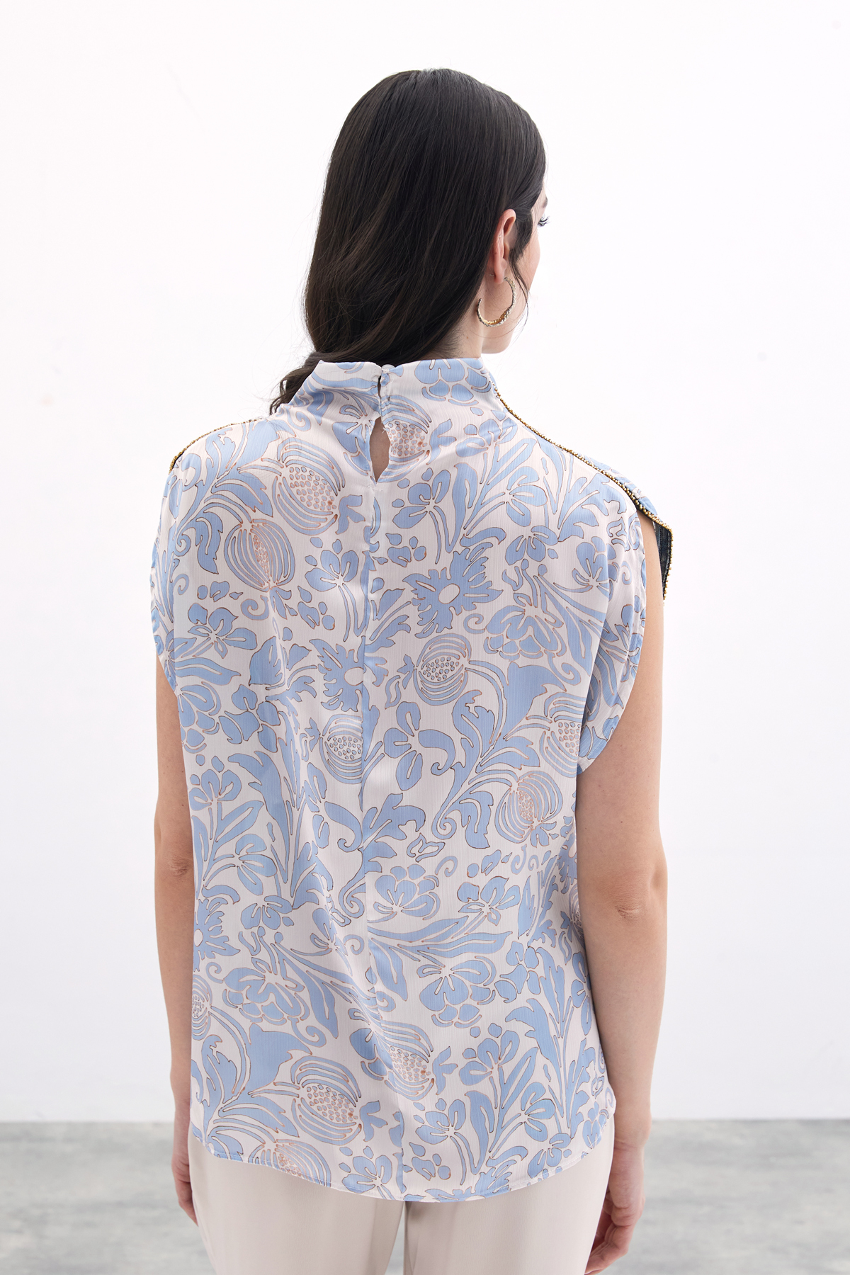 تزئینات موجود در این بلوز زیبایی و جذابیت آن را دوچندان کرده است. جزئیات زیبا و خلاقانهای که به بلوز افزوده شده، به آن ظاهری فانتزی و خاص میبخشد. این تزئینات میتوانند شامل دوختهای خاص، دکمههای تزئینی و یا الگوهای هنری باشند که به بلوز شخصیت بیشتری میدهند و آن را از دیگر لباسها متمایز میسازند.