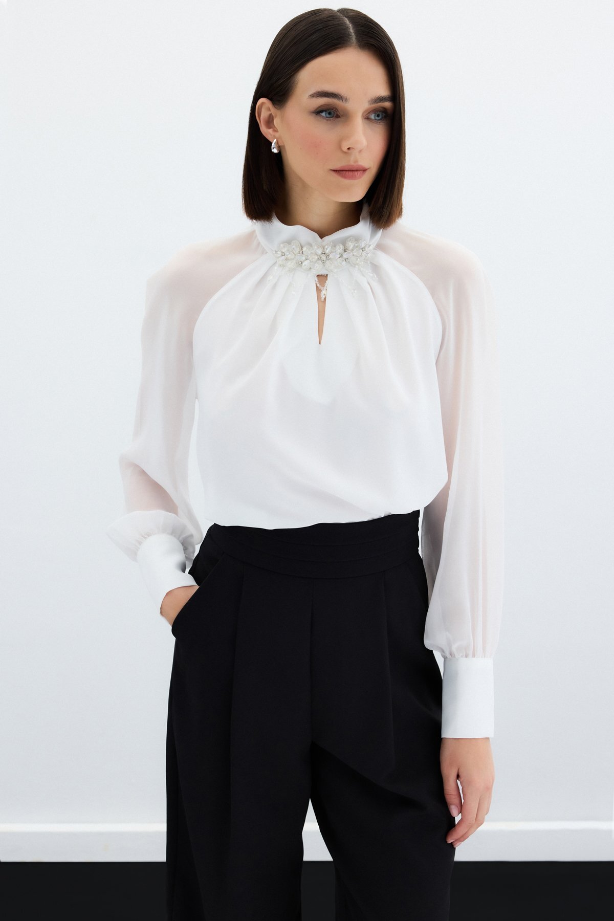 از ویژگیهای برجسته این بلوز، اکسسوری یقه آن است که به زیبایی و جذابیت این محصول افزوده است. این یقه خاص نه تنها باعث میشود که بلوز از دیگر مدلها متمایز شود، بلکه به استایل شما جلوهای خاص و منحصر به فرد میبخشد. افرادی که به جزئیات لباسهای خود اهمیت میدهند، حتماً از این ویژگی لذت خواهند برد.
