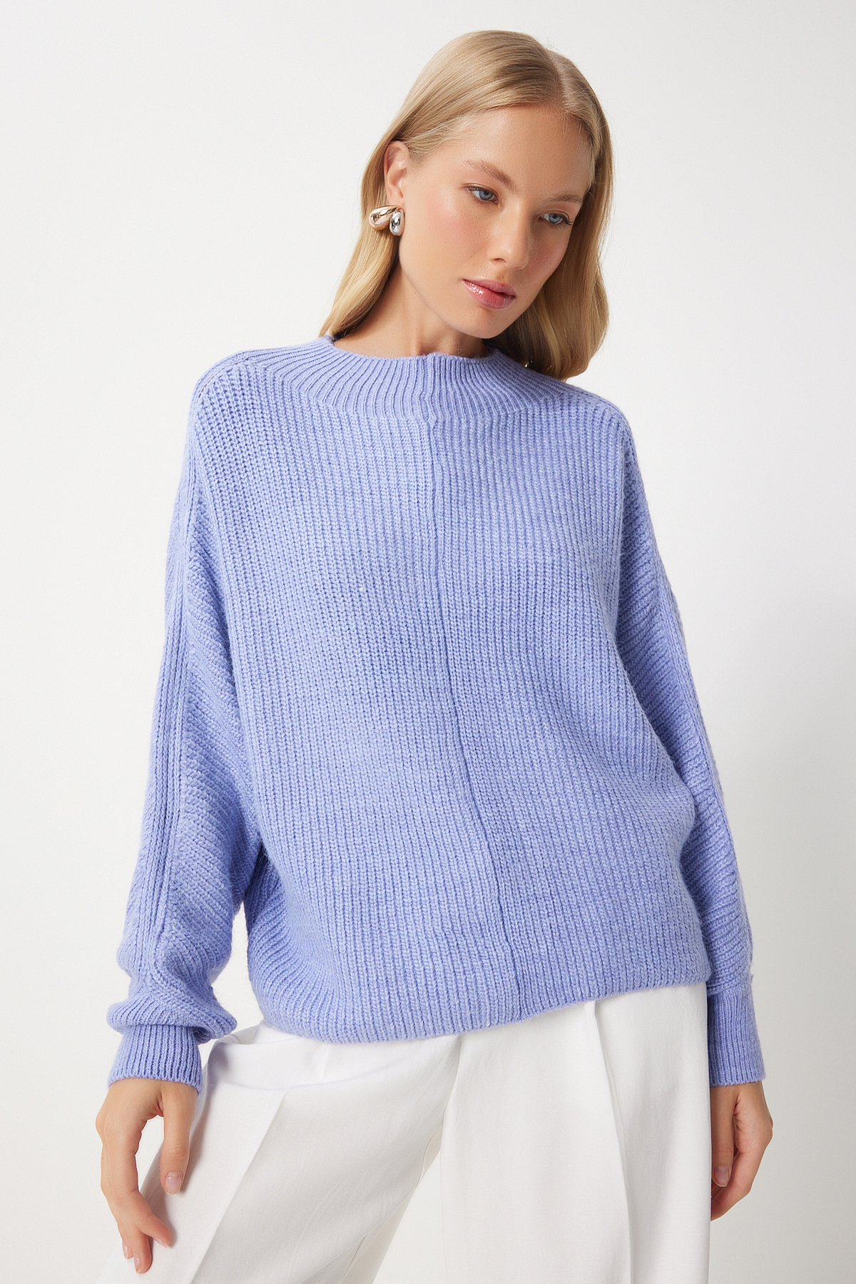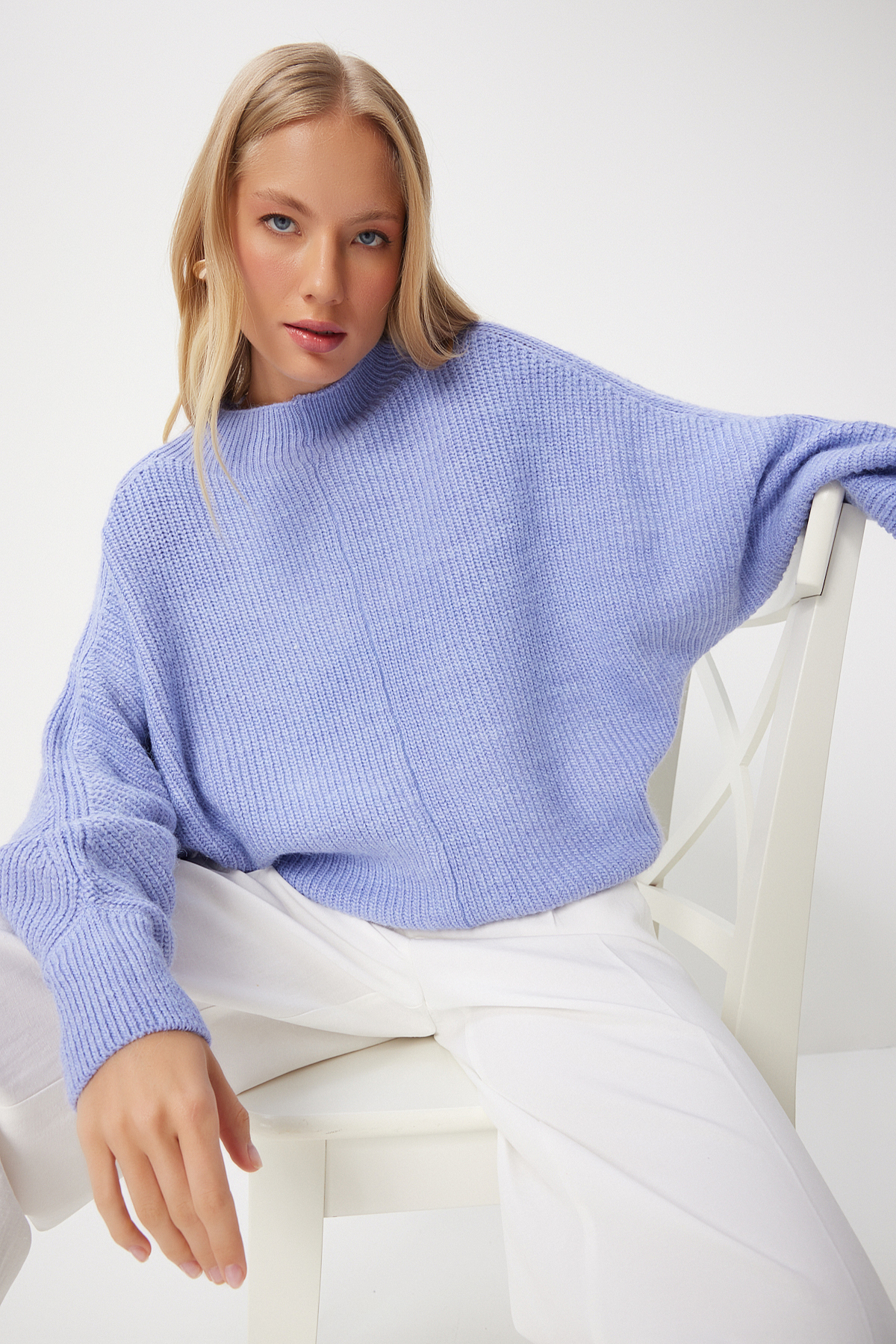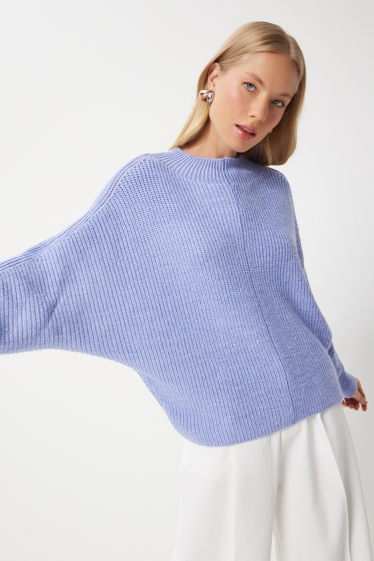 بلوز بافتنی آستین خفاشی نیلی زنانه با کیفیت عالی و رنگ زیبا و طرح شیک و قیمت باورنکردنی ساخت برند Happiness İstanbul را از فروشگاه اینترنتی فیزا خریداری کنید.