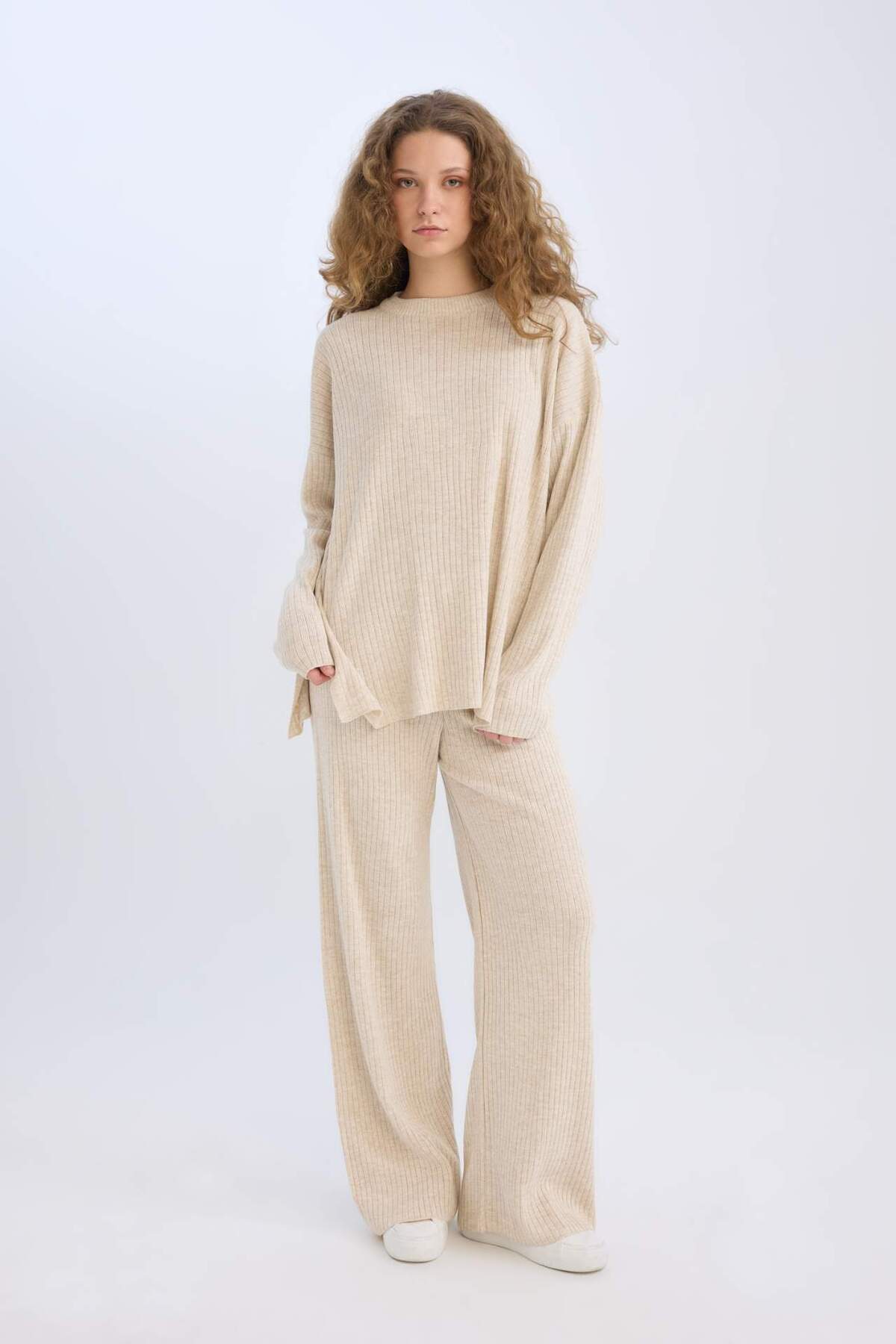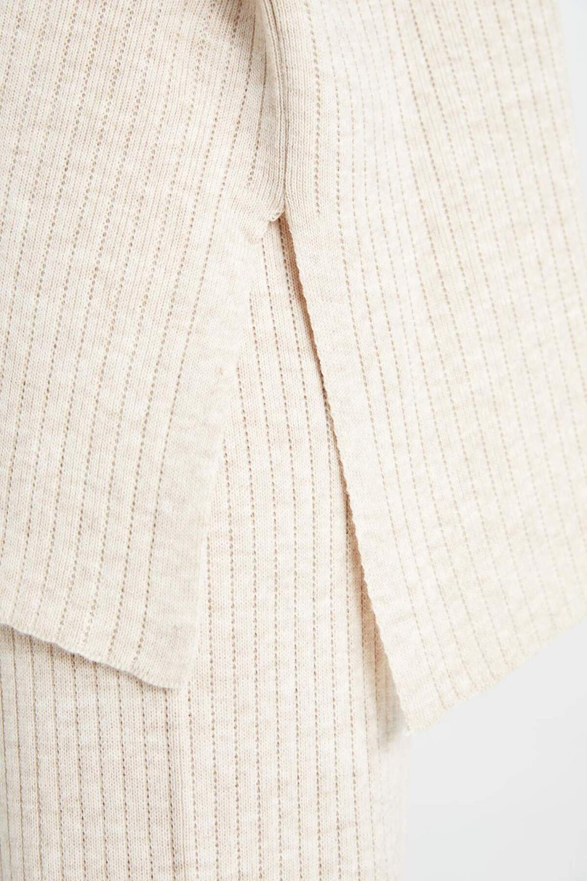 بلوز راحتفیت یقه گرد بلند با آستینهای بلند و پایین کمر کشی D5232AXNS برند Defacto