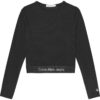 بلوز زنانه مشکی با یقه گرد و نوار ریز برند Calvin Klein