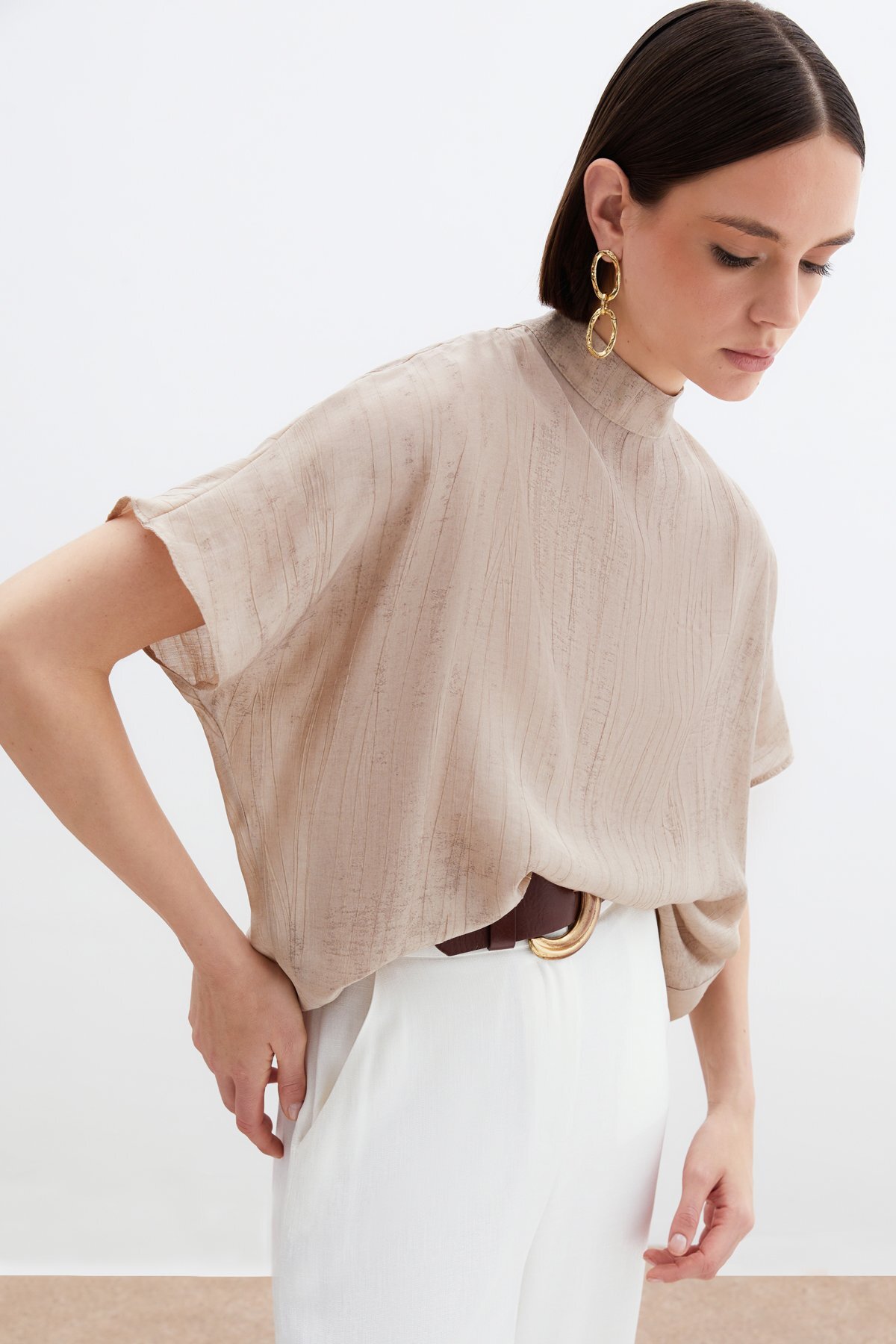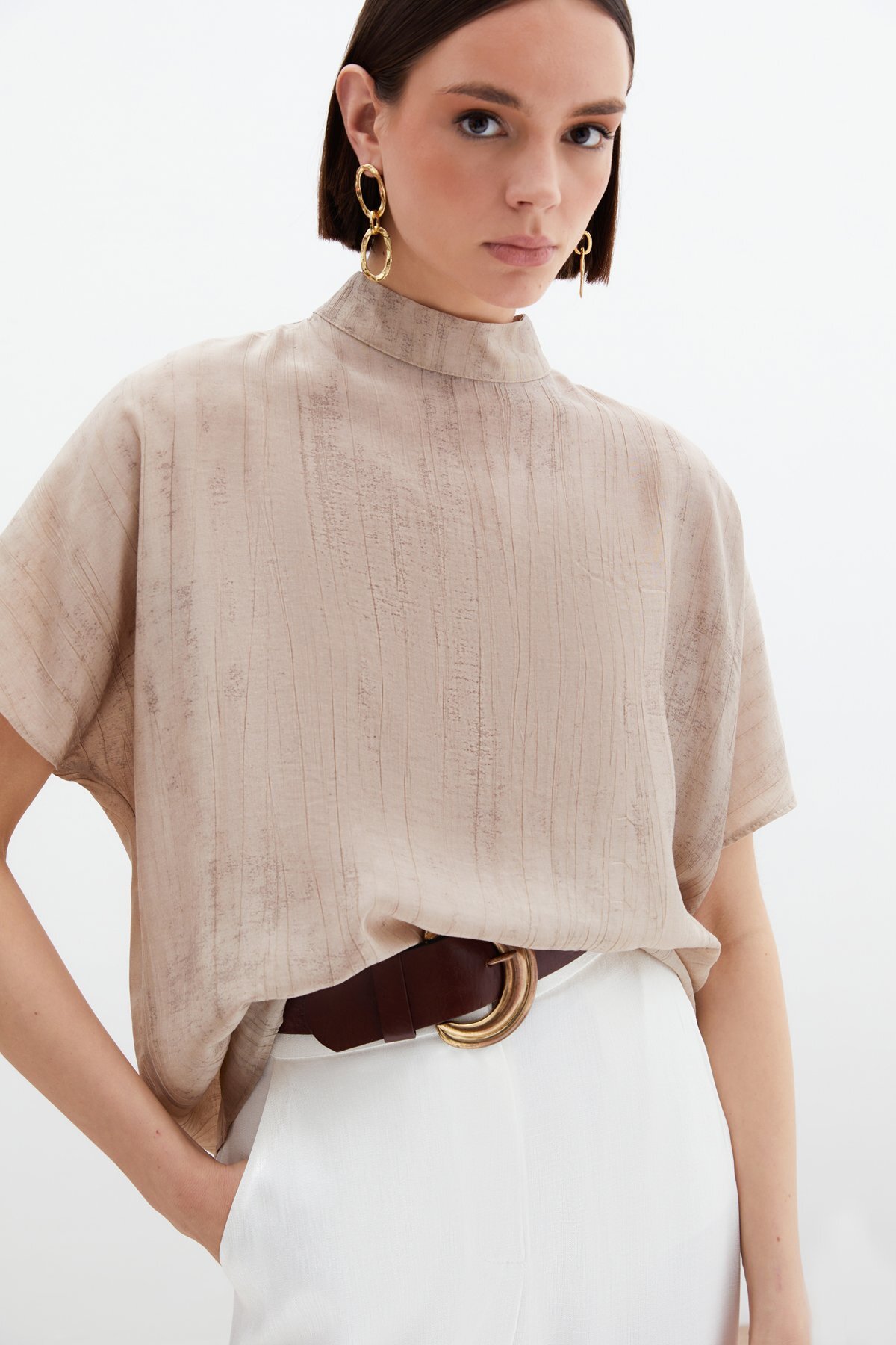 بلوز گشاد نقشدار بژ کد 1753368074 یک انتخاب عالی برای تمام فصلها است. این بلوز به دلیل طراحی خاص و جذابش، میتواند با تیپهای مختلف هماهنگ شده و ظاهری مدرن و شیک به شما بخشید. رنگ بژ این بلوز به سادگی با دیگر رنگها ترکیب میشود و به راحتی میتوانید آن را با شلوار، دامن یا شلوارک ست کنید.