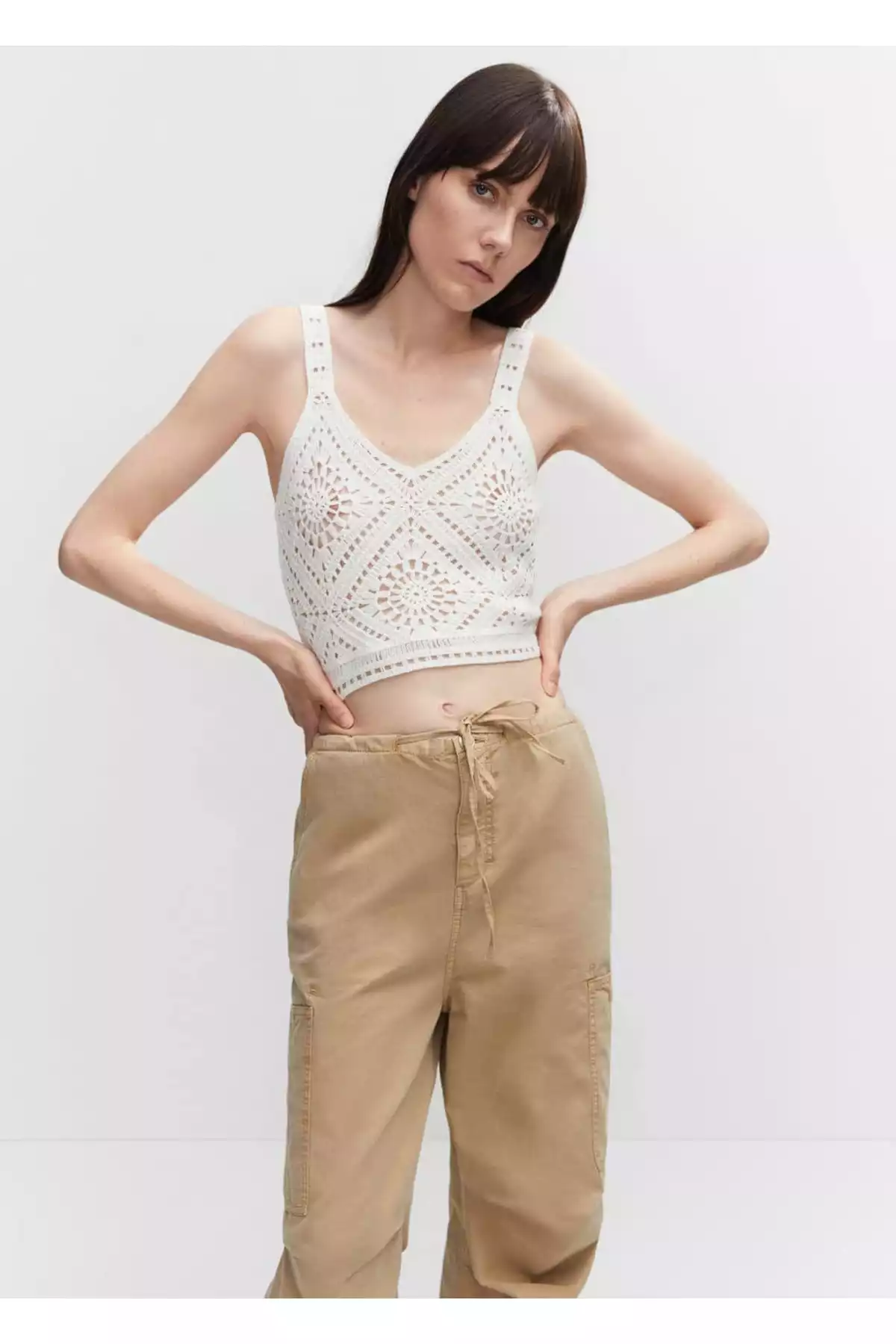 یکی از ویژگیهای بارز این بلوز، کیفیت بالای مواد اولیه استفاده شده در آن است. از الیاف نرم و سبک برای بافت بلوز استفاده شده که احساس راحتی را در طول روز تضمین میکند. همچنین، خاصیت تنفسی این الیاف باعث میشود که در روزهای گرم تابستانی، شما احساس خنکی و راحتی کنید. طراحی ظریف و دقیق قلاب بافی، یک جلوه بصری بینظیر به این بلوز بخشیده است.