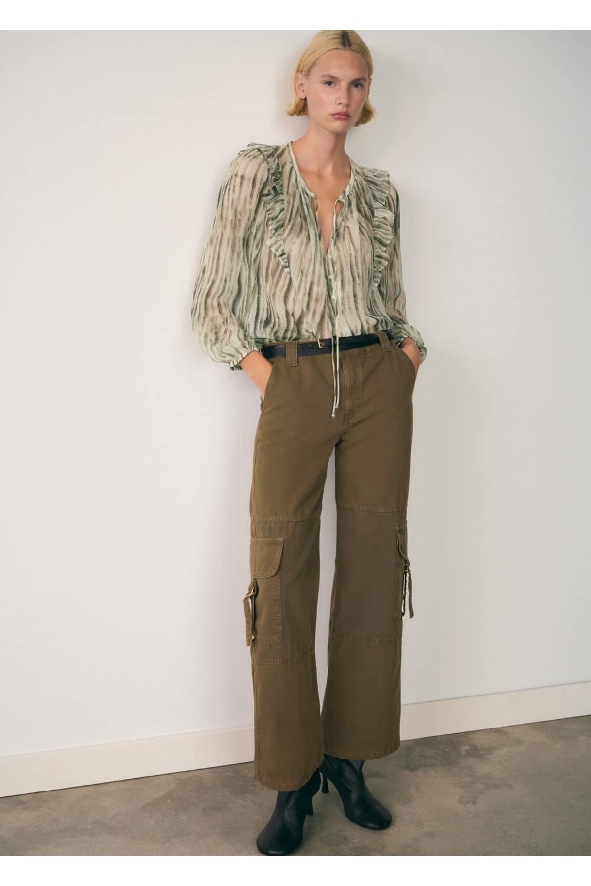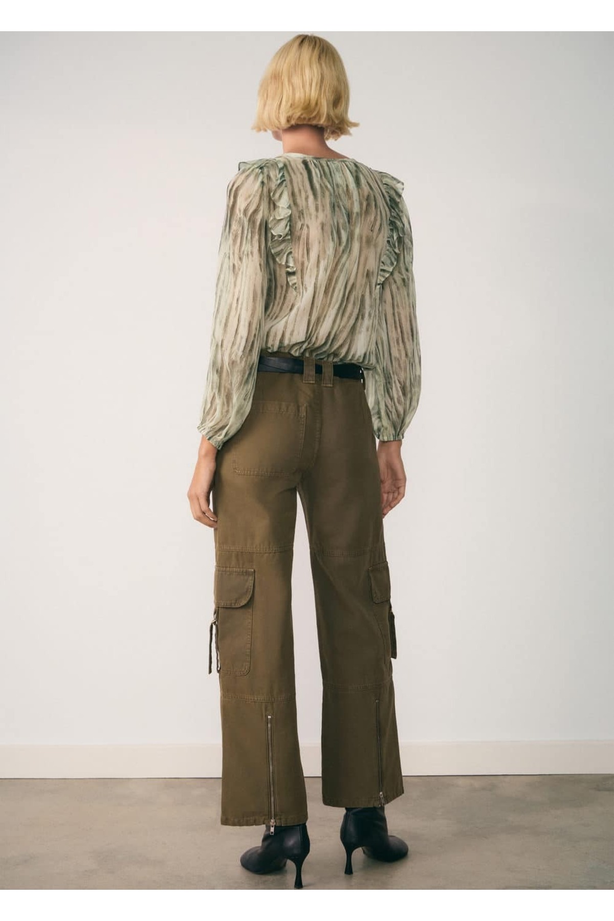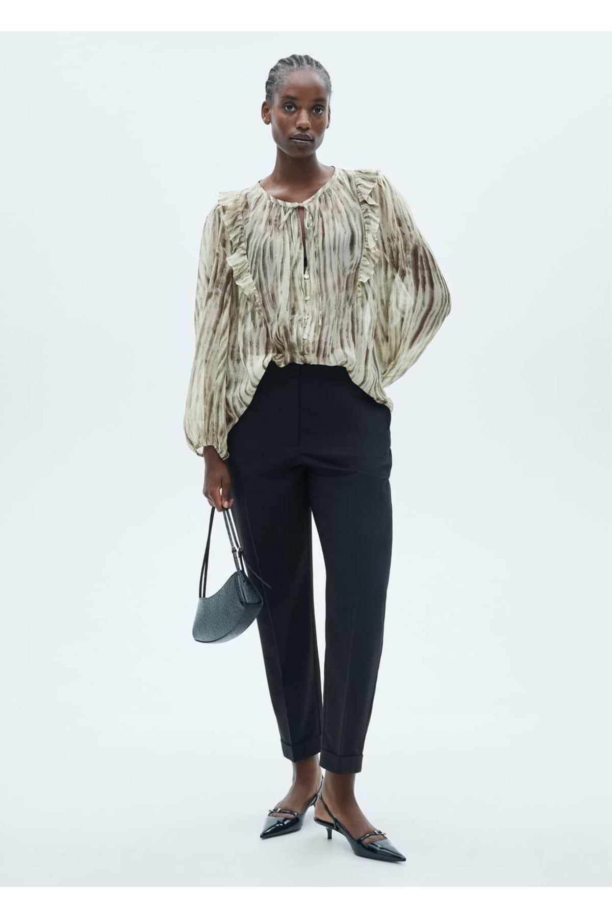 طراحی این بلوز به گونهای است که میتواند به سادگی با اکسسوریهای مختلف ست شود. از گردنبندهای بلند و زنجیری گرفته تا گوشوارههای بزرگ و رنگی، این بلوز بستر مناسبی برای ابراز سلیقه شخصی کاربر فراهم میآورد. همچنین، قابلیت ترکیب رنگ آن باعث میشود که با تنوع بیشتری از لباسها همراه شود و کاربر به راحتی بتواند استایلهای مختلفی را امتحان کند.