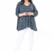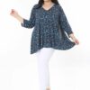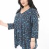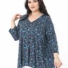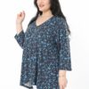 بلوز زنانه بزرگ سایز با یقه V و آستین کلاهی طرح دار کد 1742308325