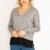 بلوز یقه V خاکستری با لبههای تزئینی بزرگ را میتوان به راحتی با شلوارهای جین، دامنها یا شلوارهای پارچهای ترکیب کرد. این تطبیقپذیری شما را قادر میسازد تا به راحتی برای هر مناسبت یا رویدادی خود را آماده کنید. چه بخواهید به یک مهمانی بروید و چه بخواهید در یک روز عادی به خرید بروید، این بلوز گزینهای عالی برای انتخاب است.