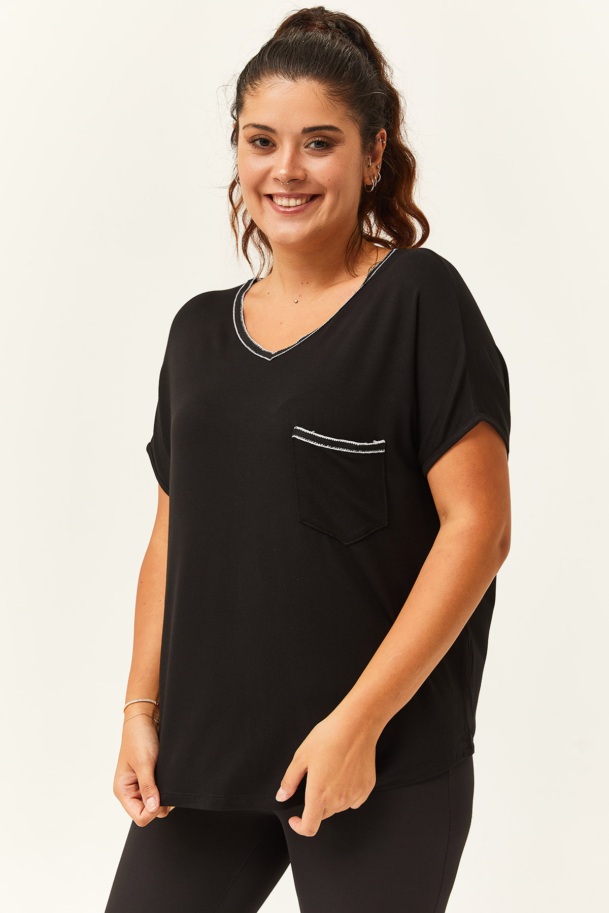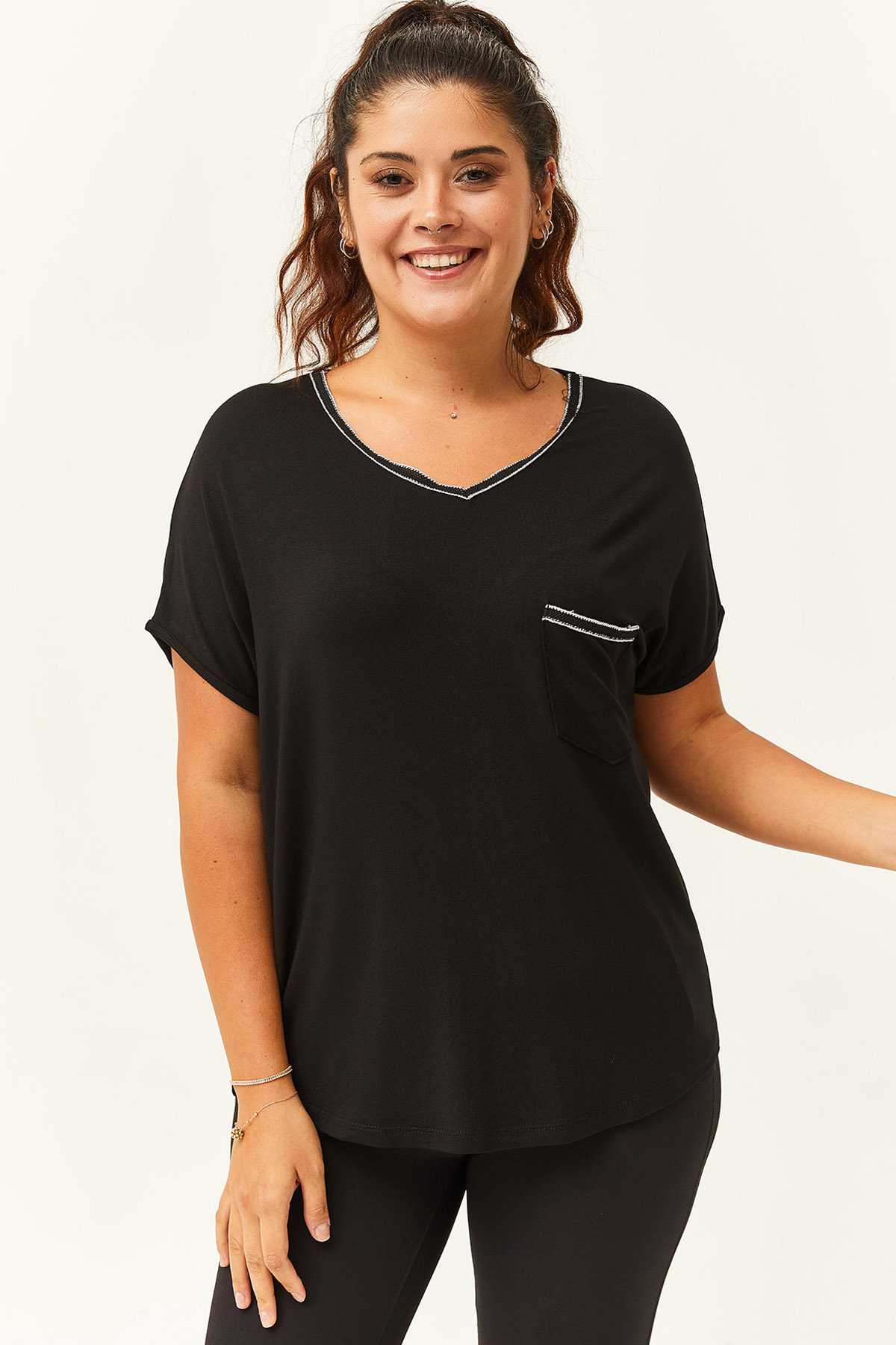 بلوز یقه هفت نواری سایز بزرگ نقره مشکی جیب زنانه با کیفیت عالی و رنگ زیبا و طرح شیک و قیمت باورنکردنی ساخت برند Ebsumu را از فروشگاه اینترنتی فیزا خریداری کنید.