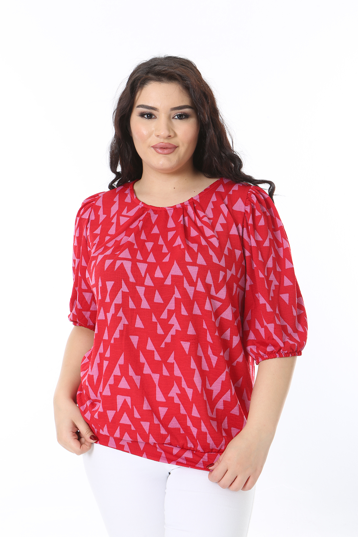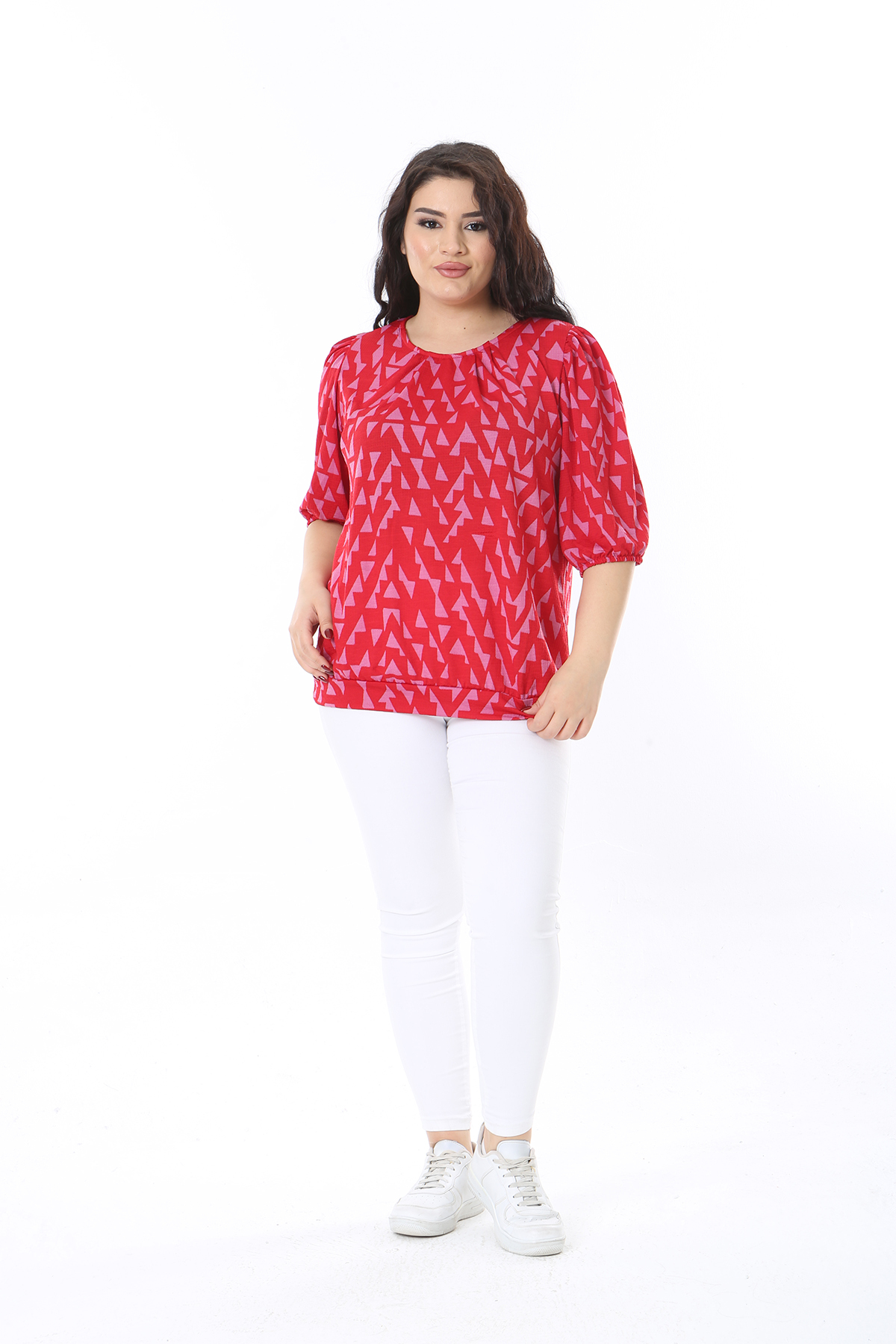 بلوز زنانه بزرگ با یقه رنگی و آستین کشدار ۶۵N۳۸۷۵۶ کد 1742308327