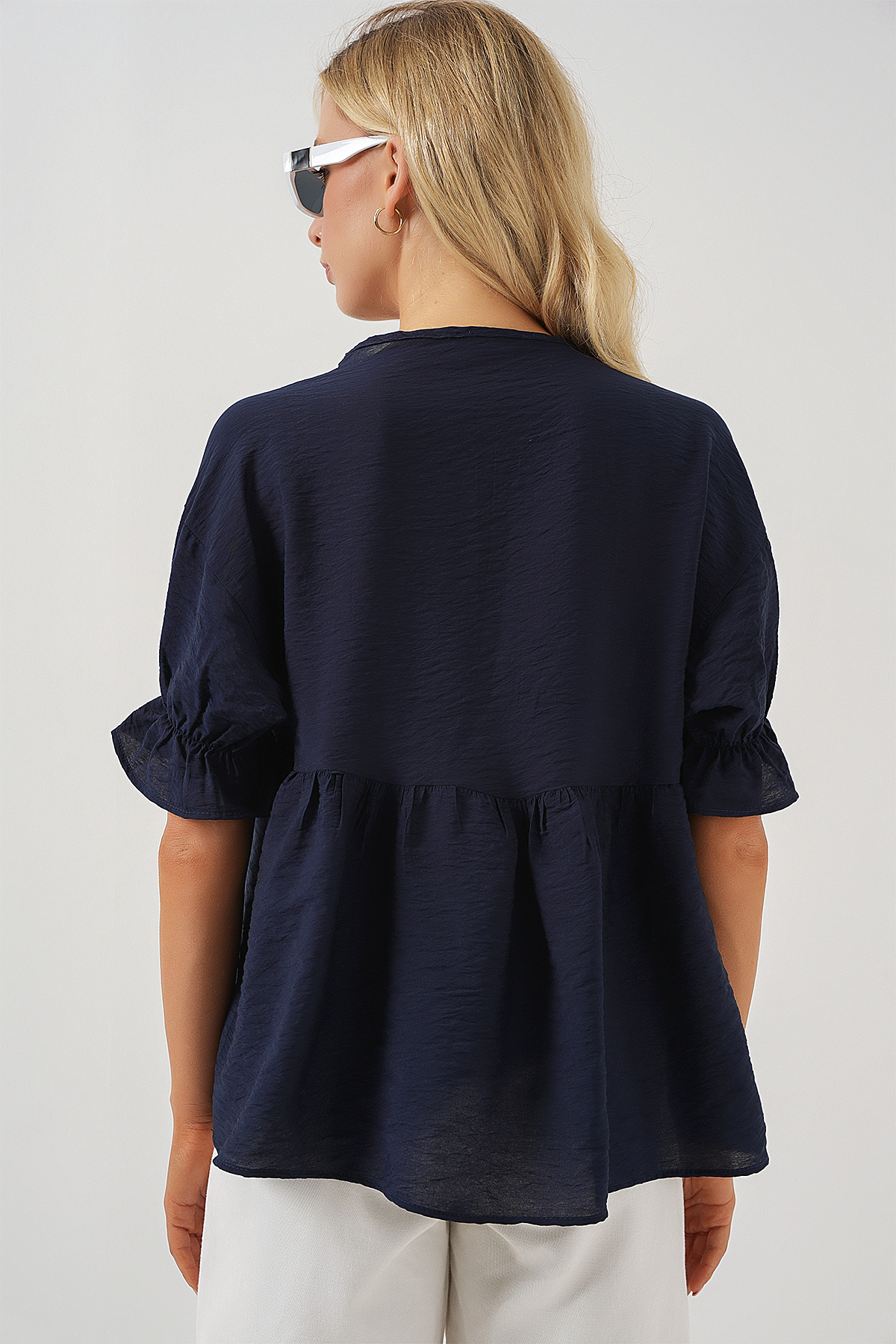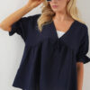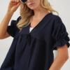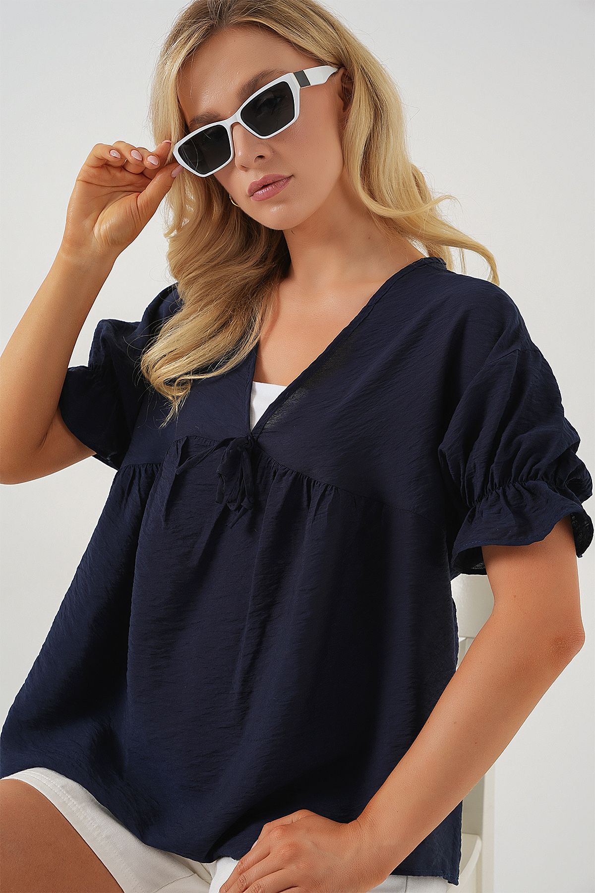 این بلوز با یقه گرهای خود، جلوهای زنانه و دلربا به ظاهر شما میبخشد. یقه گرهای به شما این امکان را میدهد که به دلخواه خود آن را تنظیم کنید و با توجه به سلیقه شخصیتان، استایل متفاوتی ایجاد کنید. همچنین، آستین کوتاه این بلوز، راحتی و تهویه مناسب را در روزهای گرم تابستان فراهم میآورد و باعث میشود که شما احساس راحتی بیشتری داشته باشید.