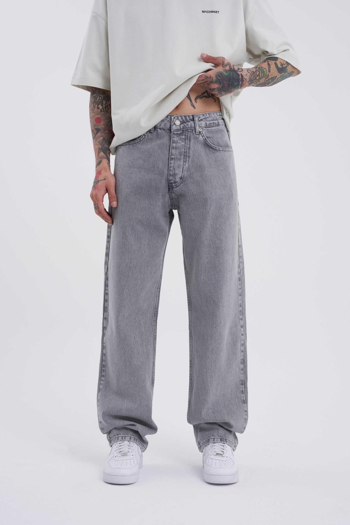 بنزین مردانه جین راحت و گشاد رنگ خاکستری اسیدی برند Machinist