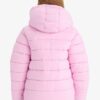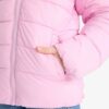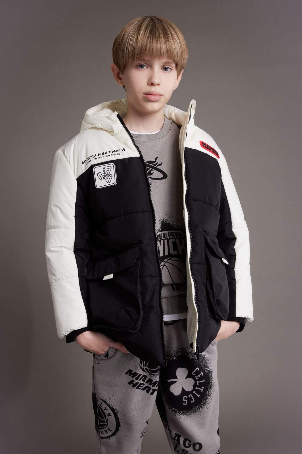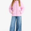 به فارسی میتوان ترجمه کرد: “کاپشن شلنگی زنانه بچهگانه با کلاه و زیپ ضدآب” برند Defacto