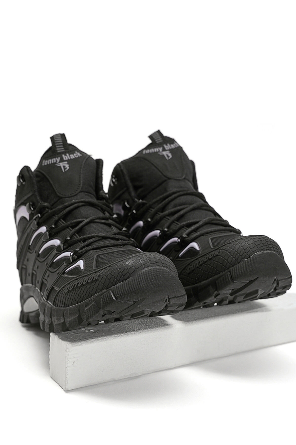 بوت راحت بافته شده دو رنگ مشکی و خاکستری، دارای ویژگی ضدآب و بنددار. برند Tonny Black