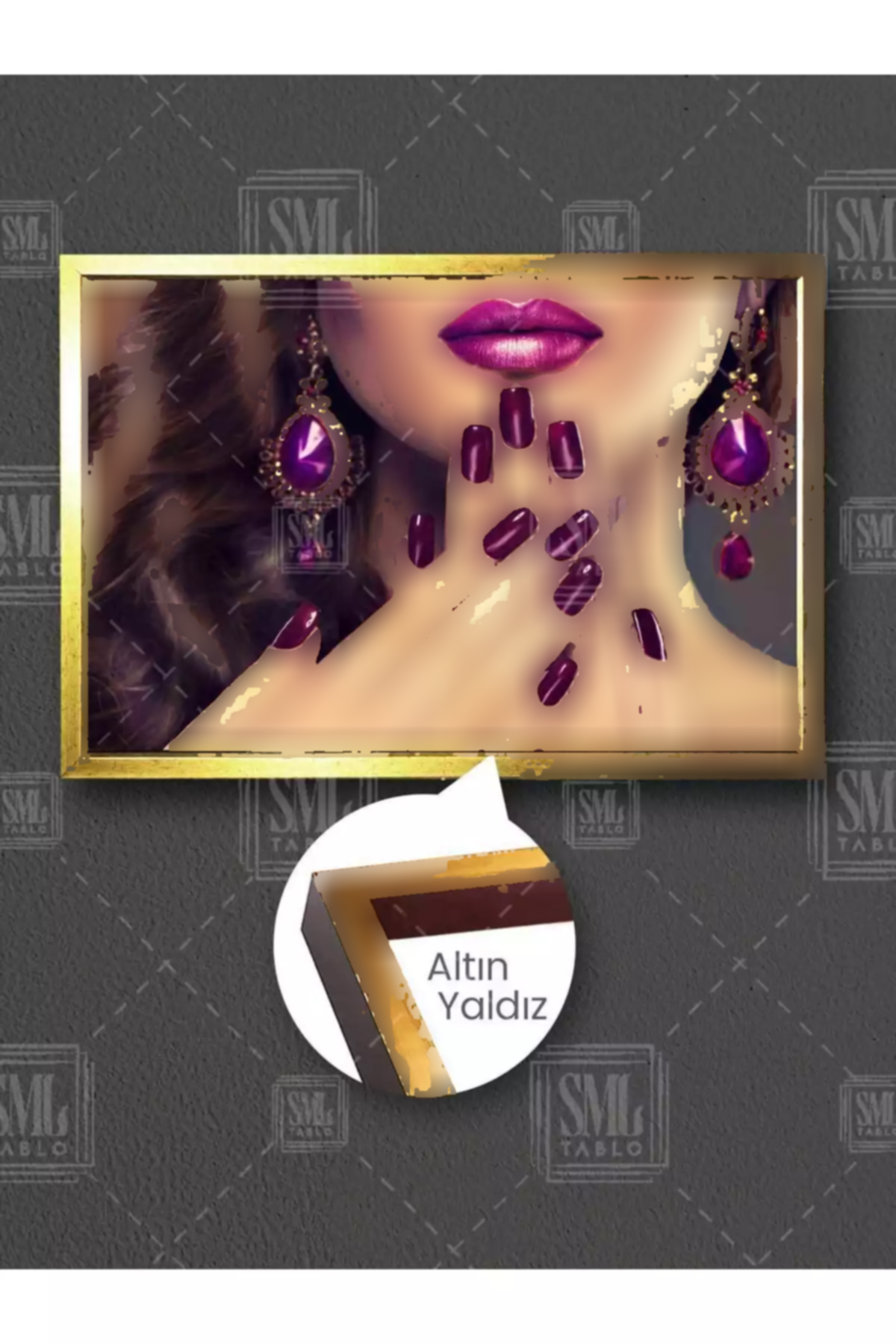 تابلوی افقی با موضوع زن با رژ لب و لاک بنفش و آرایش ناخن، یک اثر هنری جذاب و معاصر است که زیبایی و قدرت زنانه را به تصویر میکشد. این تابلو در ابعادی مناسب طراحی شده که به راحتی میتواند در دکوراسیونهای مختلف قرار گیرد و جلوهای خاص به فضا ببخشد. رنگ بنفش، به عنوان نماد شجاعت و انحصار، در این تابلو غالب است و حس پرانرژی و مدرنیته را القا میکند.