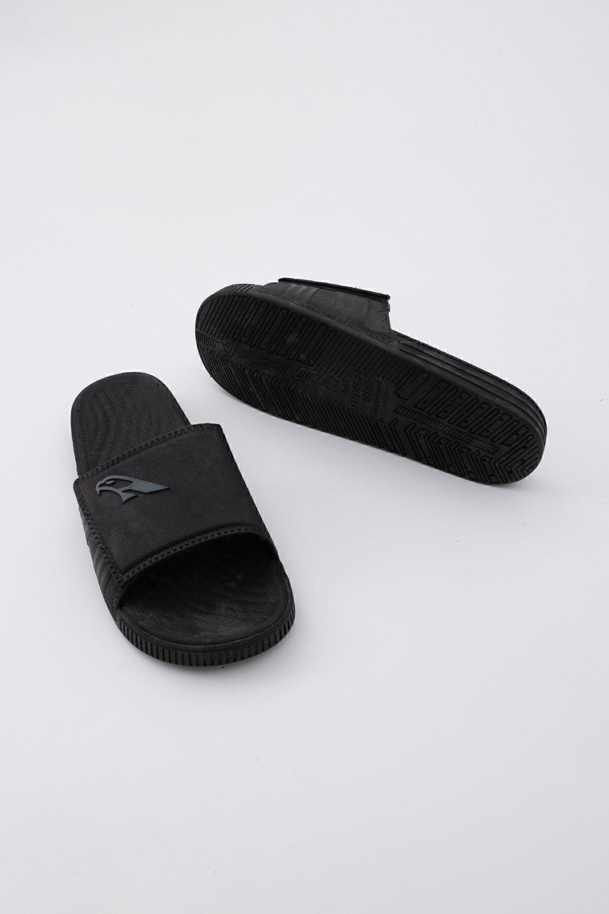 ترجمه به فارسی: دمپایی روزمره ضد لغزش مشکی مخصوص دریا، ساحل، استخر، حمام و سطوح خیس. برند Moda Devrin