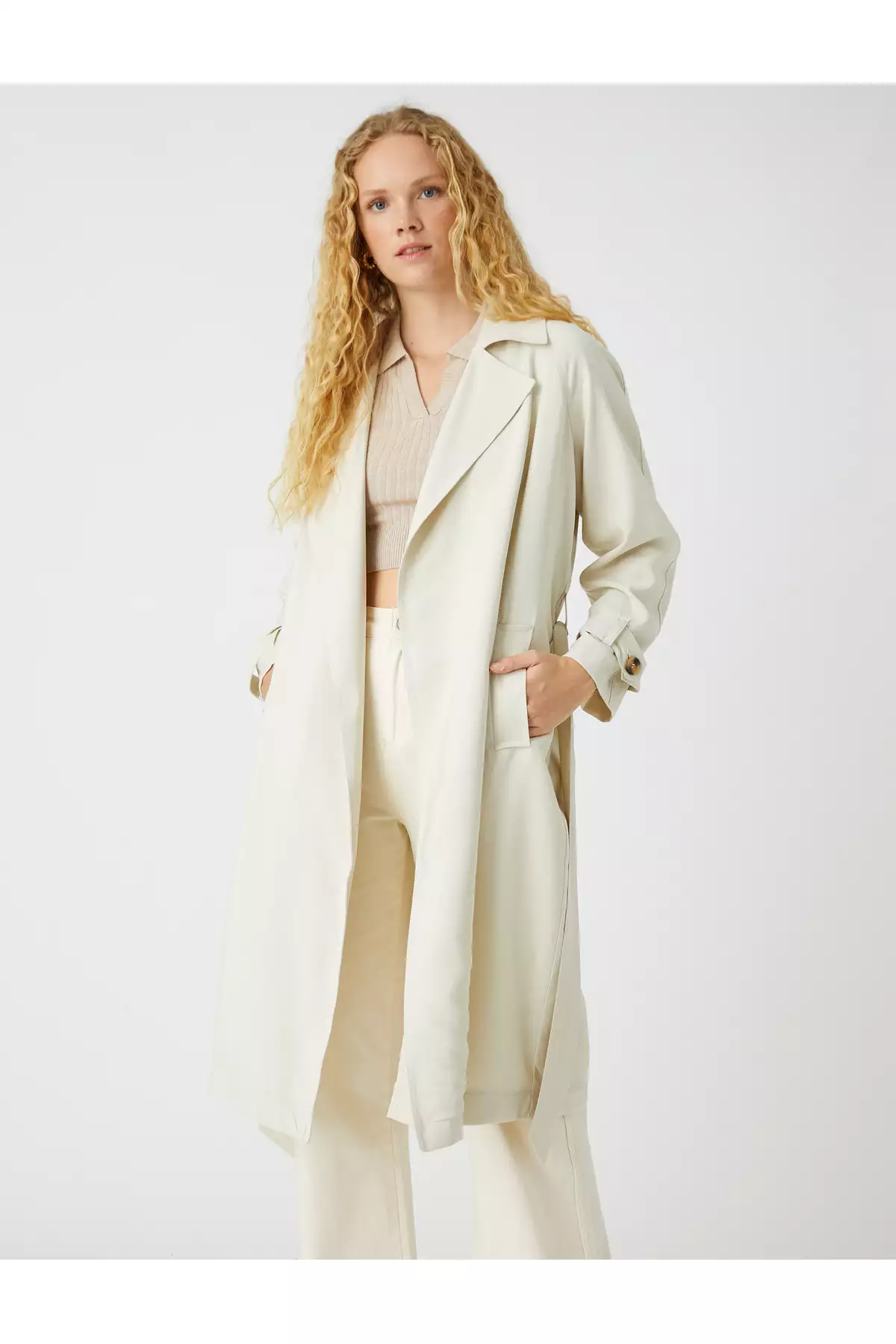 یکی از ویژگیهای بارز این ترنچ، بدون جیب بودن آن است، که ظاهری مرتب و منظم را به آن میبخشد. همچنین، آستینهای آن به صورت بازوئی استاندارد طراحی شده و در نهایت، این محصول به تزیینات خاص و لوگوی برند Koton مزین شده است.