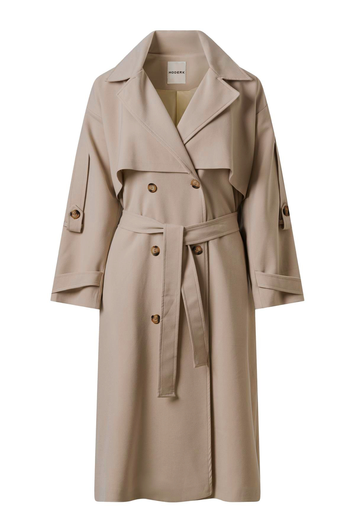 ترینچکت ماکسی زنانه با سایز بزرگ و آستین بلند، دارای کمر بند و طراحی آستین منحنی برند Moderk